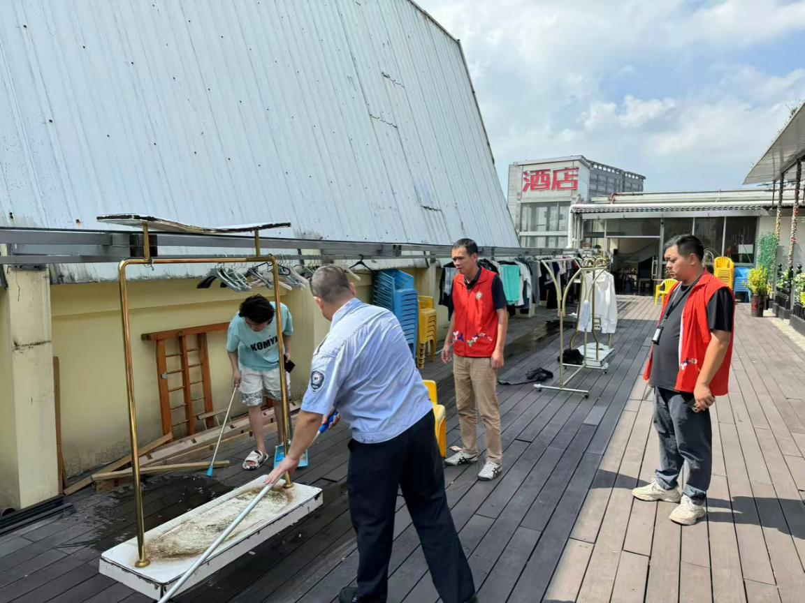 活动当日,社区工作人员、网格员、物业保洁人员与环卫工人共同组成联合行动队,分工协作,对小区内的绿化带、楼顶阳台、地下车库、排水沟渠及卫生死角等关键区域进行了系统性、地毯式排查。队员们深入各个角落,俯身细致检查,重点清理了房前屋后和公共绿地中遗留的废弃盆罐、闲置容器、泡沫箱、花盆托盘等各类易积水容器,确保全面覆盖、不留死角。