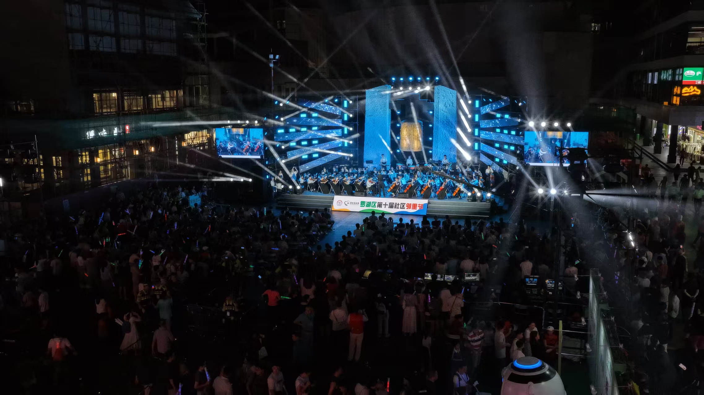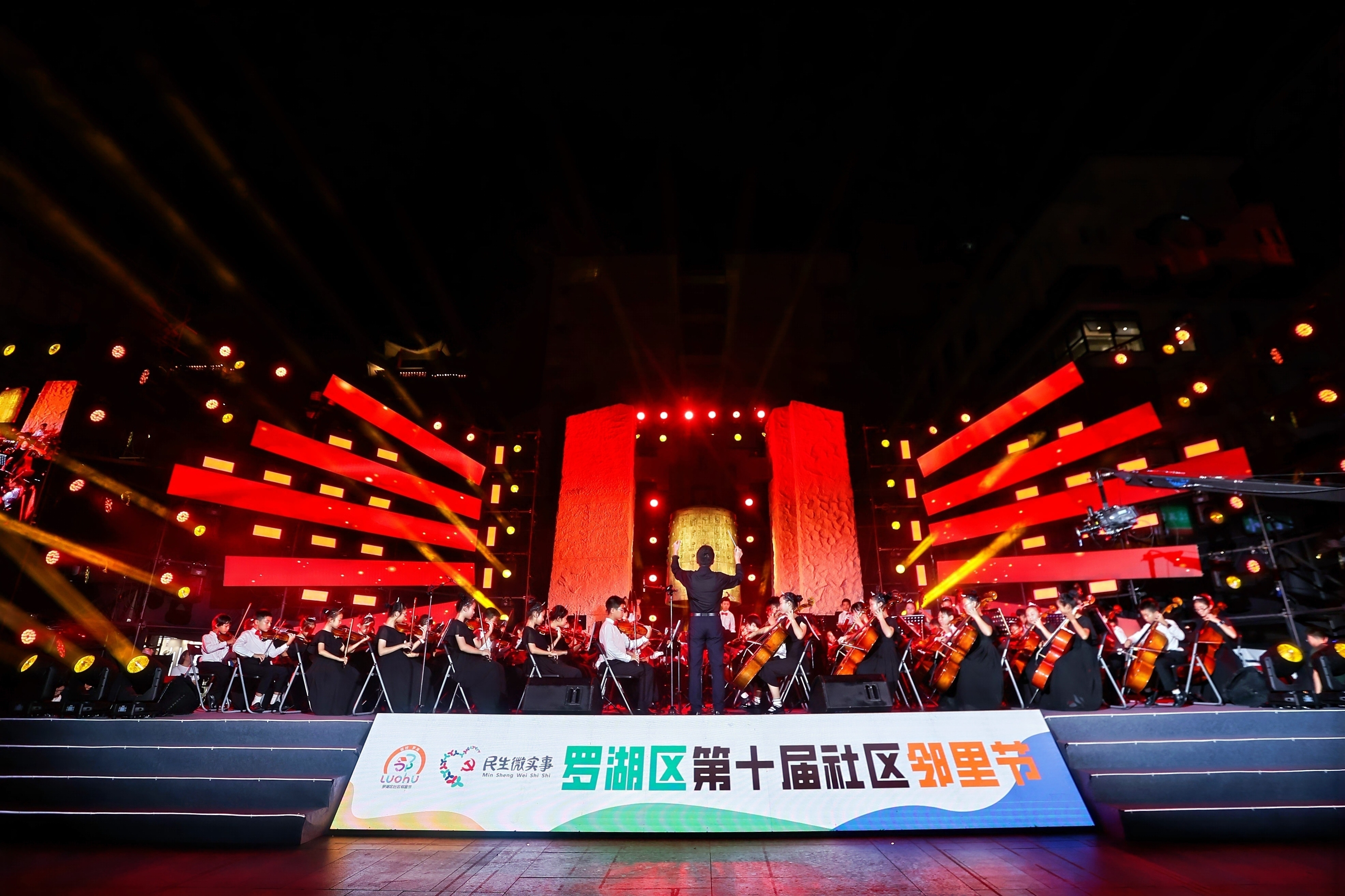 老街舞台秀才艺,共织邻里“文艺梦”。本次邻里节主会场打造“百姓大舞台”,汇聚辖区多元文艺力量,不仅有深圳独立摇滚乐队“瘦人制造”、网红歌手爆爆以及专业演员滕刚、黑旭等嘉宾助阵,更有锦田小学管弦乐团、东门街道老年人协会、舞之星文化艺术馆、人民小学武术队等社区团体热情参演,让社区居民从“观众席”走上“表演台”。节目形式丰富,涵盖管弦乐《我的祖国》《绒花》《勇气大爆发》、舞蹈《东方红》、歌曲《大鱼》《喜欢你》、相声《谁信啊》、少儿舞蹈《邻里童欢》、武术表演《精武少年》等,压轴乐队节目《你要跳舞吗》《像梦一样自由》等歌曲将现场气氛推向高潮,居民在共赏共乐中深化了对社区的认同与情感。