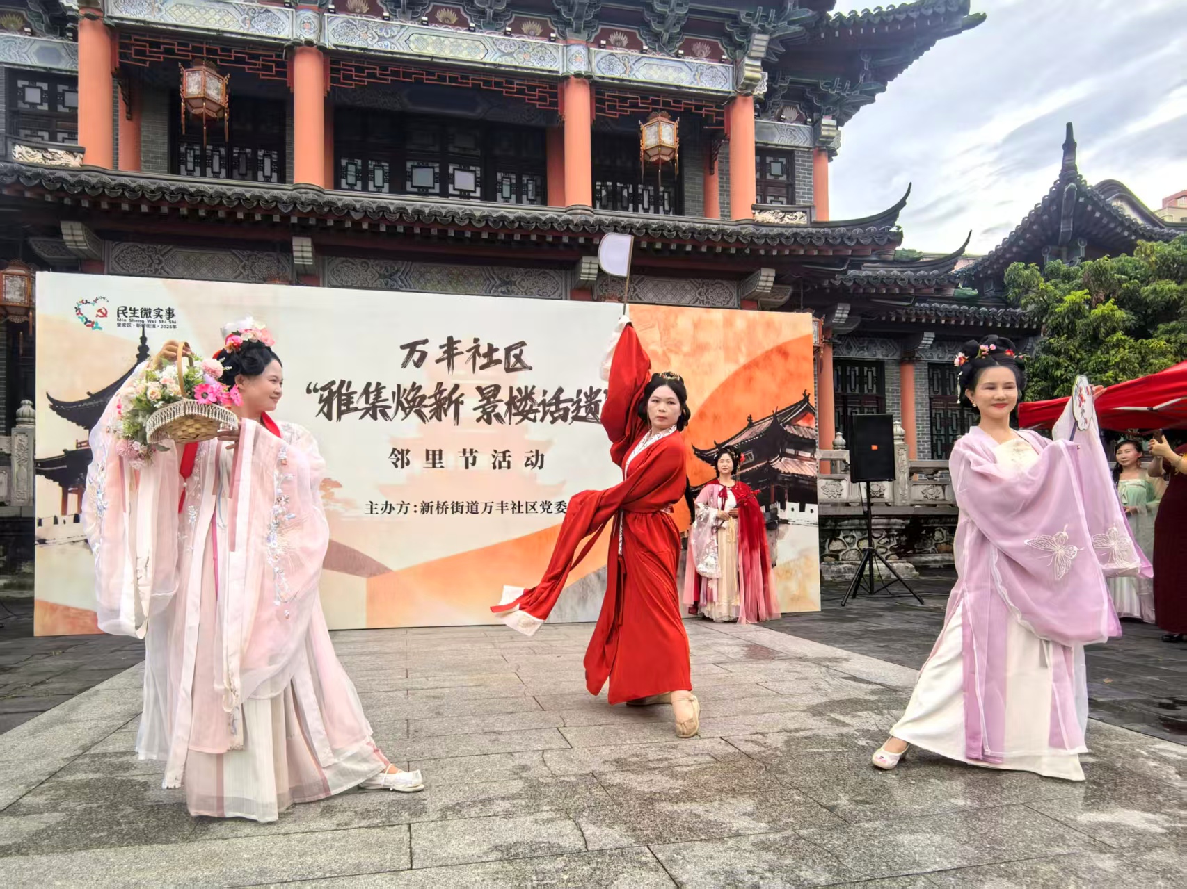 秋意渐浓,古韵悠长。近日,在新桥街道万丰社区党委的精心组织下,“雅集焕新·景楼话遗”邻里节活动在万景楼非遗中心温情开场。活动通过实地导览、非遗手作和汉服展演等形式,让辖区居民在沉浸式体验中感受和谐邻里情。