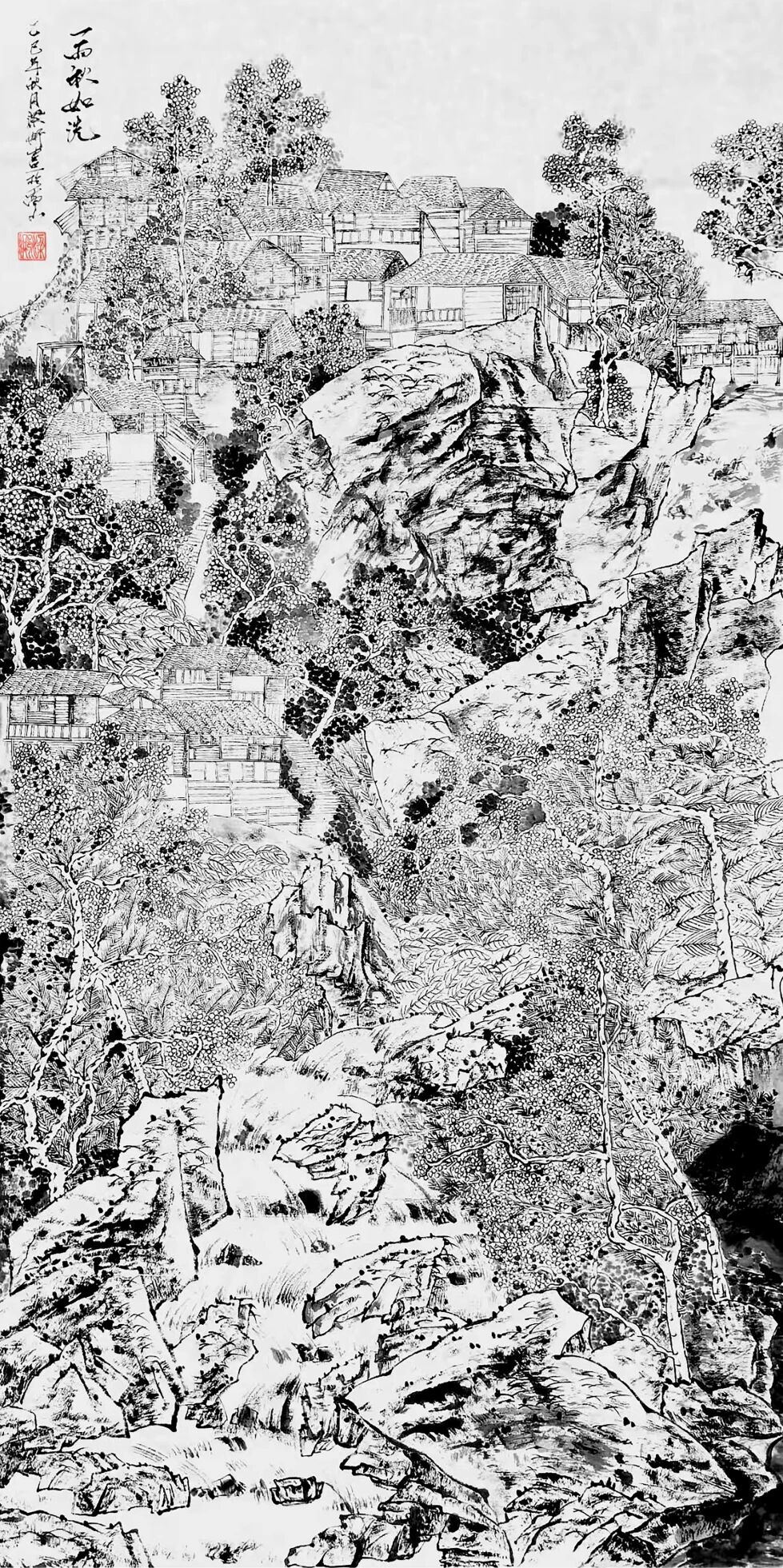 练威鹏《墨絮绯峦》,纸本设色,南外(集团)科苑小学