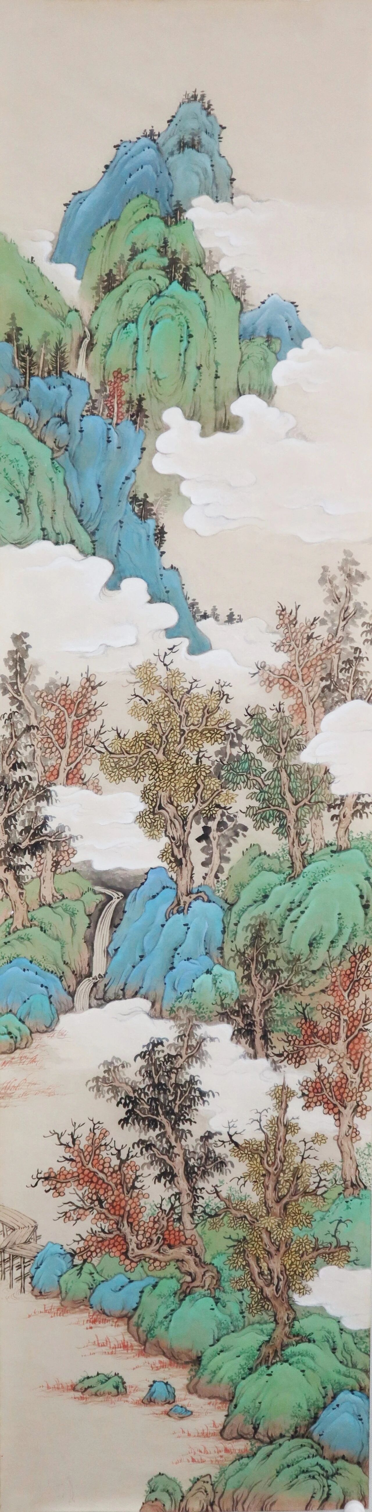 廖峻江《白云幽谷图》,纸本设色,松坪学校
