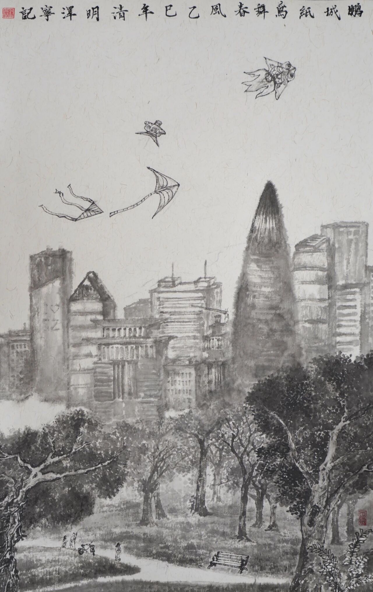 孔泽宁《鹏城纸鸢舞春风》,纸本水墨,深大附属教育集团外国语小学