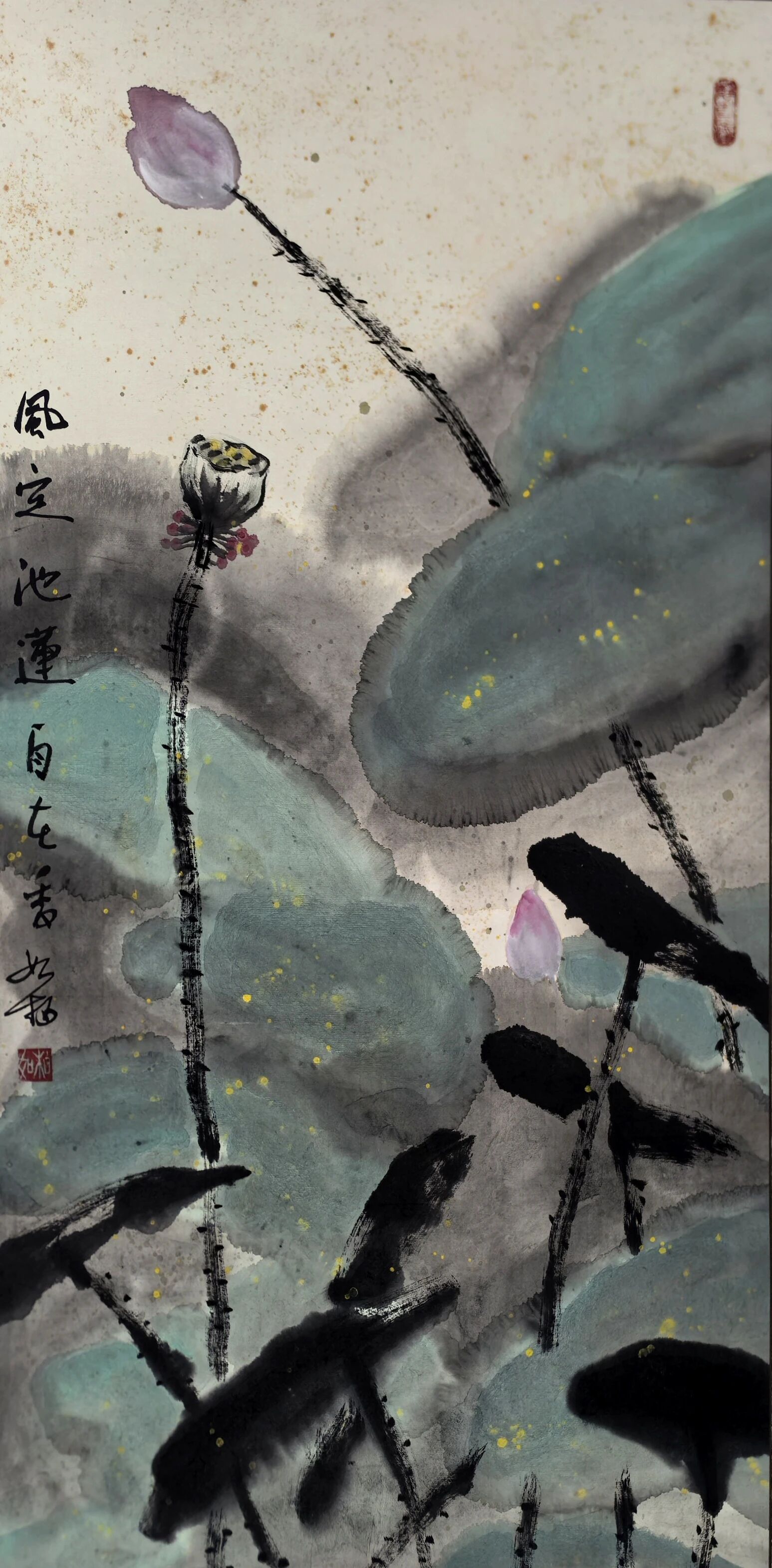 王如柏《风定池莲自在香》,纸本设色,学府二小