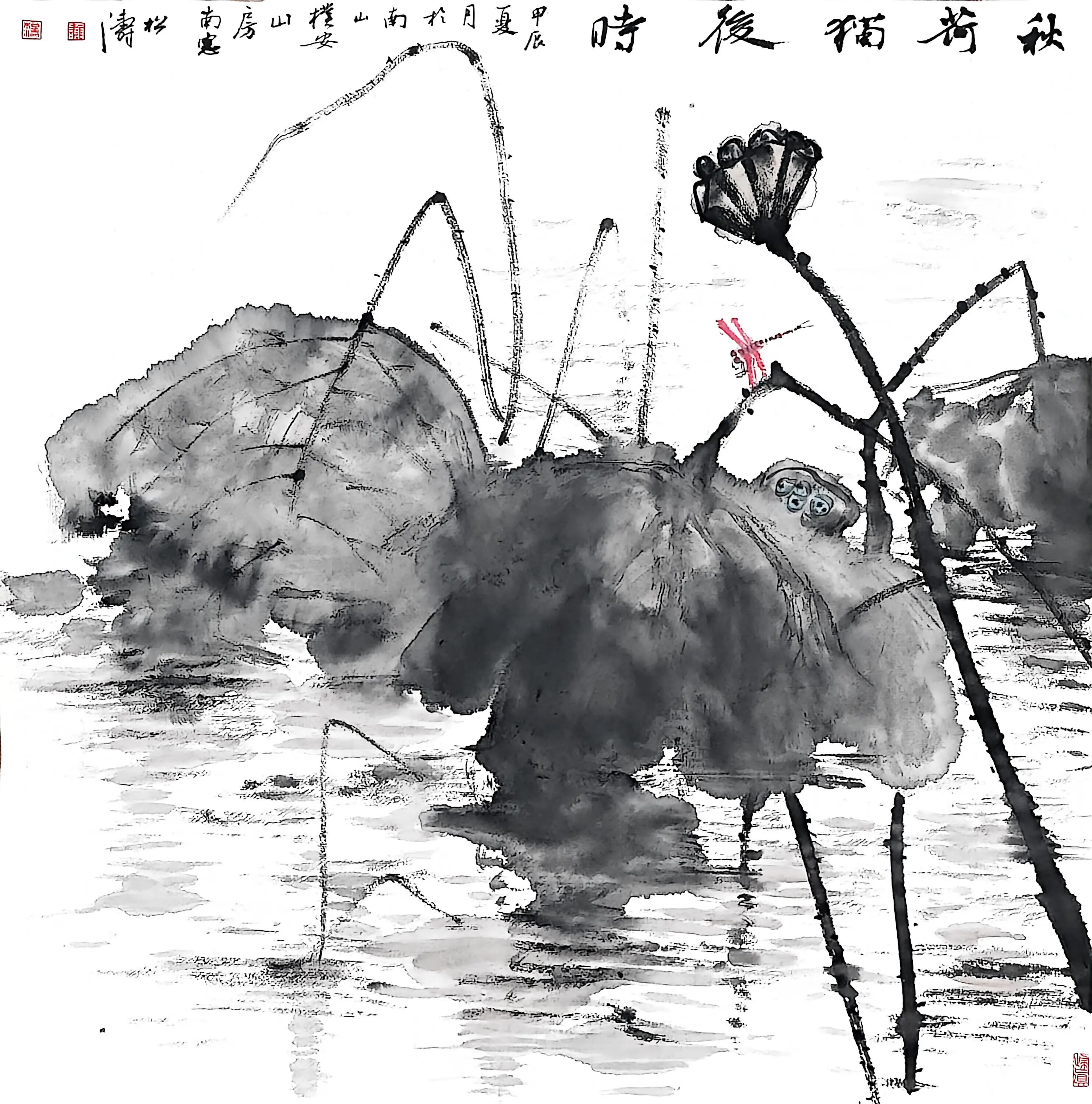 谢松松《秋荷独后时》,纸本设色,前海港湾学校