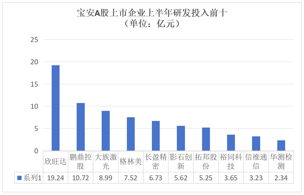 “敢砸”研发,是宝企参与全球竞速的底气。来自同花顺iFinD的数据显示,宝安64家A股上市企业(以下简称“上市宝企”)上半年研发总投入达到154.86亿元,研发强度是A股上市公司整体数值的1.5倍。