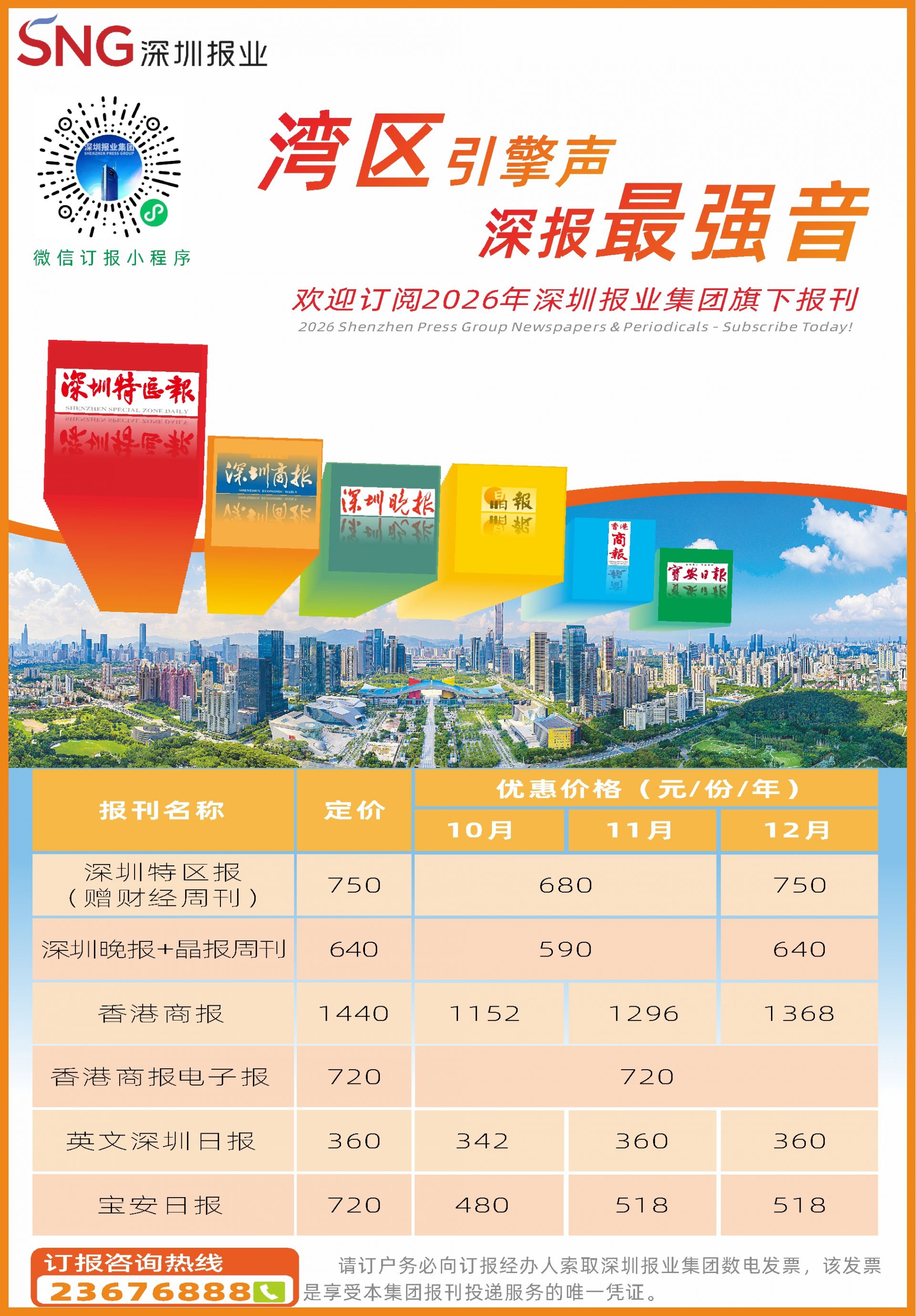 (注:请订户务必向订报经办人索取深圳报业集团数电发票,该发票是享受本集团报刊投递服务的唯一凭证。)