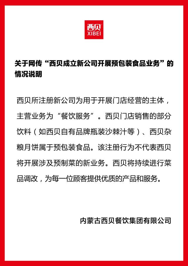 西贝最新声明:我们没开预制菜新公司