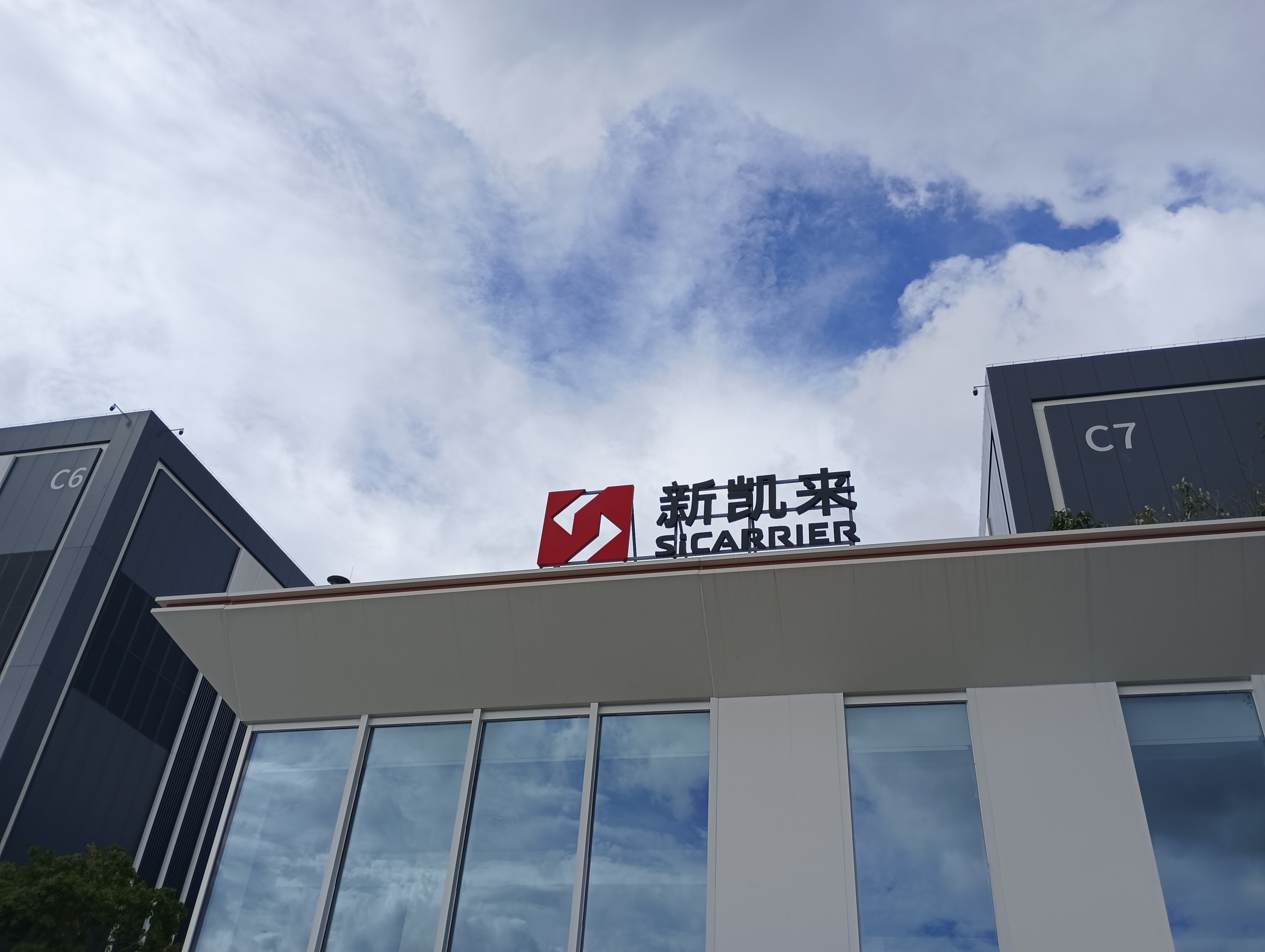 10月13日中午,天空被阵雨洗刷后更显透亮。深圳市龙岗区辅城坳社区,平龙西路旁,一块岭南地区常见的黄蜡石上刻着三个字——“新凯来”,远处,几栋枣红色屋顶与白墙的建筑掩映在绿树间,巨大的研发厂房和生产厂房仿佛两个包装精密的电脑机箱……这个藏着一连串“新惊喜”的现代化工业园区,很容易被误认为一座风景宜人的公园。