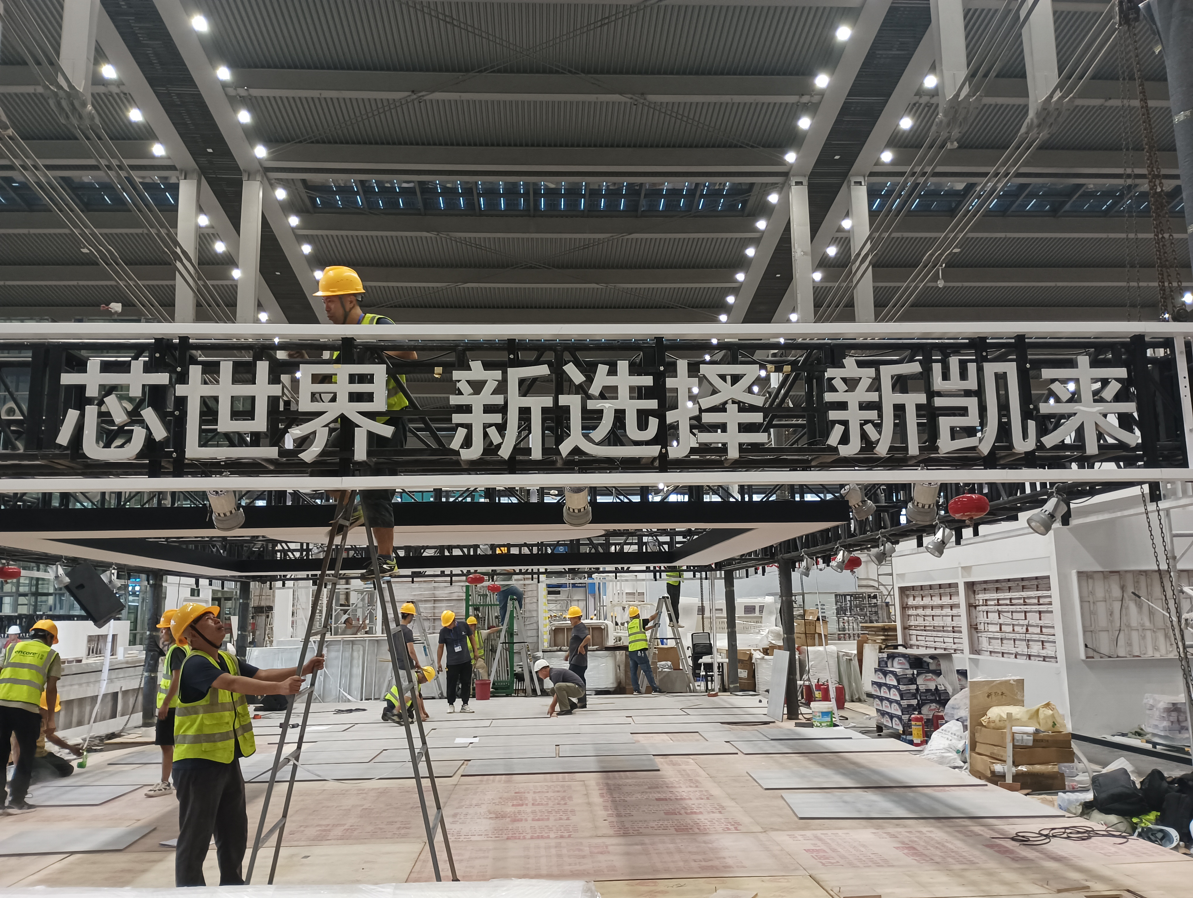13日下午,记者在深圳会展中心看到,新凯来的展位正在搭建中,展位横板上正是那句醒目的宣传语:“芯世界,新选择,新凯来”。
