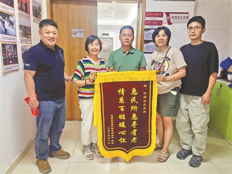 魏书瑜母女即刻驱车前往高峰学校附近,寻至12点30分仍无收获。12点35分,陈周武传来好消息,已在大浪龙胜凤凰酒楼附近找到老人,正驾车将其送回。将近下午1点,陈周武搀扶着老人下车,母女悬着的心终于放下。