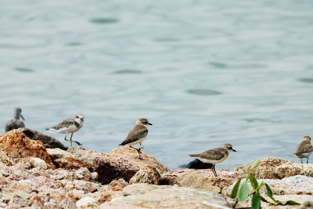 约60只蒙古沙鸻和铁嘴沙鸻