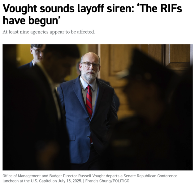 白宫管理与预算办公室近期已要求各部门提交“关键职能评估”和“人力结构优化方案”,以便在有限资金下集中资源至国家安全、能源独立与边境防控等优先领域。《政治》评论认为,此项指令“以财政危机为名,实则推动一场政治性的官僚体系重构”,体现了总统团队长期谋划的“去官僚化”理念。
