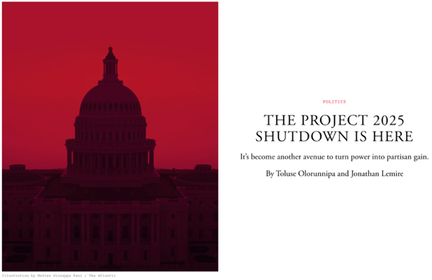 △《大西洋月刊》评论,特朗普政府正在把预算僵局用作政治杠杆