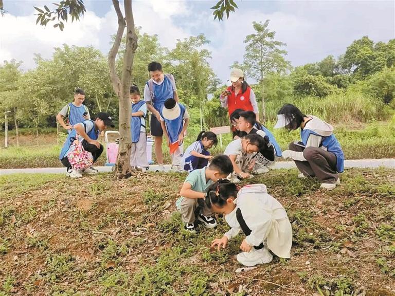 活动伊始,小队员们手握《“秋天的礼物”寻宝任务单》,带着满满的好奇心,向着石岩湿地公园自然教育中心出发。一路上,他们是大自然的“收藏家”和“发现家”。一颗形状特别的小石头、一片被秋天染红的落叶,一颗树上掉落的果实……都成了孩子们眼里的“宝贝”。孩子们把秋天悄悄落下的“礼物”,一件一件装进自己的收集袋里,也把秋天的色彩收进了眼里、心里。
