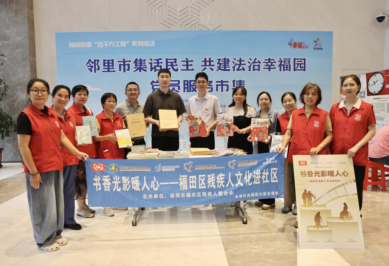 这份文化暖意的延续,早从九月便已悄然启程。9月19日下午,梅林街道党工委携手孖岭社区党委共同举办的党员服务市集正式启幕,主题定为“邻里市集话民主 共建法治幸福园”。其间,以“书香光影暖人心”为宗旨的捐书活动也同步启动。自9月下旬活动展开以来,福田区梅林街道孖岭社区党委一直为社区残疾人、老年人及全体居民提供丰富多样的无障碍阅读服务,在社区内广泛播撒了平等与包容的文化理念。此次捐赠的58本书籍得到了中央财政福彩公益金和福田区残疾人联合会的鼎力支持,为社区残疾人、老年人及全体居民构筑了一座通往知识殿堂的桥梁。