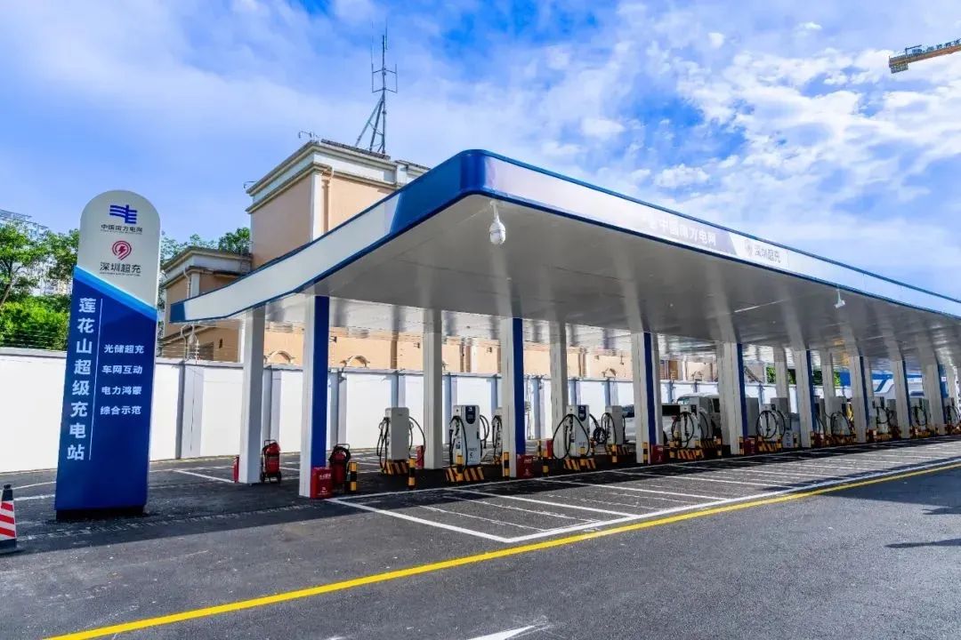 莲花山“光储超充+车网互动+电力鸿蒙”多元综合示范站位于福田区梅林街道,占地面积超过3000平方米,实现了超级充电、智慧光伏先进储能、车网互动、虚拟电厂、电力鸿蒙、电力魔方预制舱、云边协同等新技术、新模式、新业态的多元融合应用,是全国首个“光储超充+车网互动+电力鸿蒙”多元综合示范站。