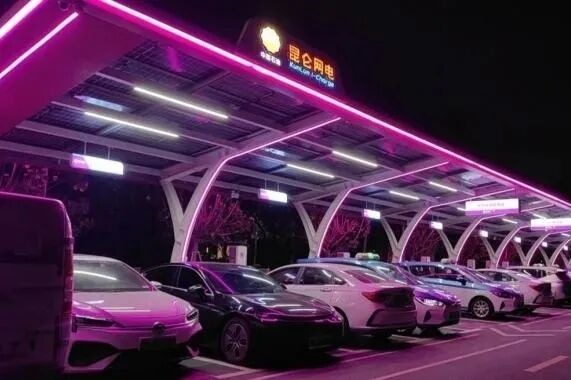 笔架山公园西门“光储超充-车网互动”一体化示范站位于福田区笔架山公园西门停车场内,是中国石油携手华为数字能源合作建设的首座光储充放一体化示范站。