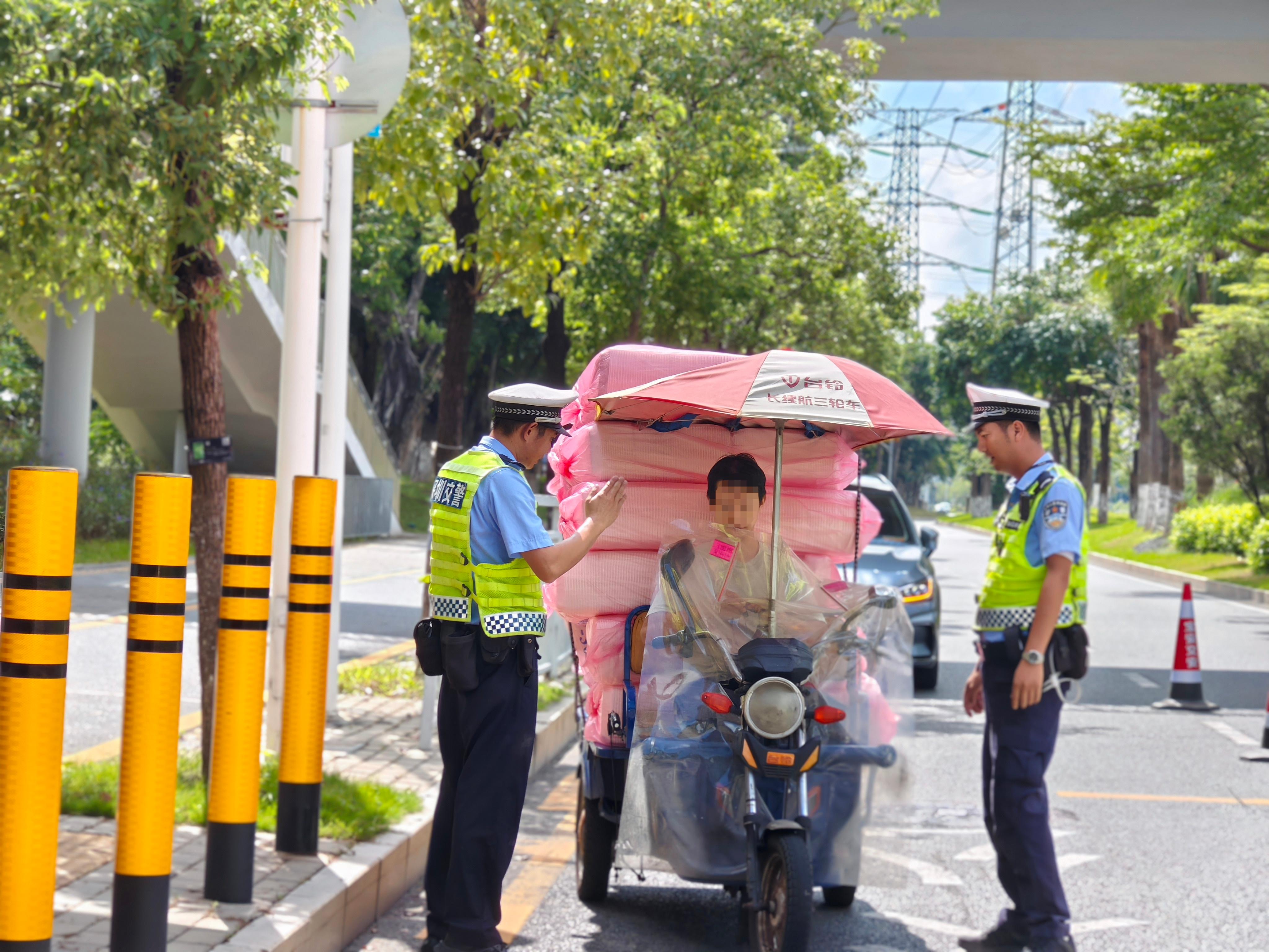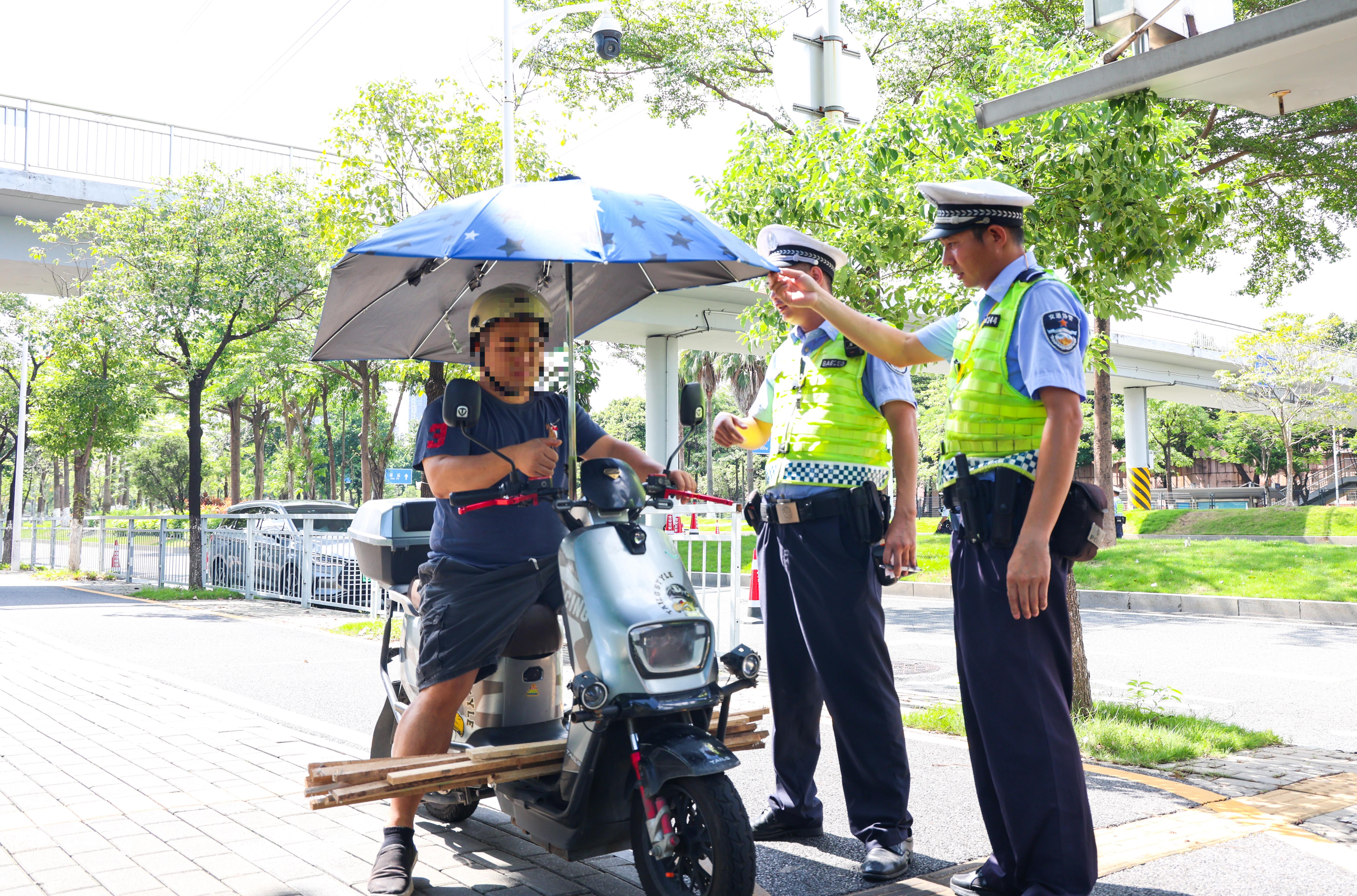 为提升“十五运”期间城市道路交通秩序,持续巩固电动自行车违法常态治理成效,深圳交警以“链路式”执法为抓手,联合城管、街道等部门形成执法合力,在全市范围内持续开展电动自行车、三轮车重点违法整治行动,严查无牌上路、非法改装、违规载人、占用机动车道等违法行为,依法暂扣一批超标车、“带篷”车,净化辖区道路通行环境,为市民出行安全筑牢防线。
