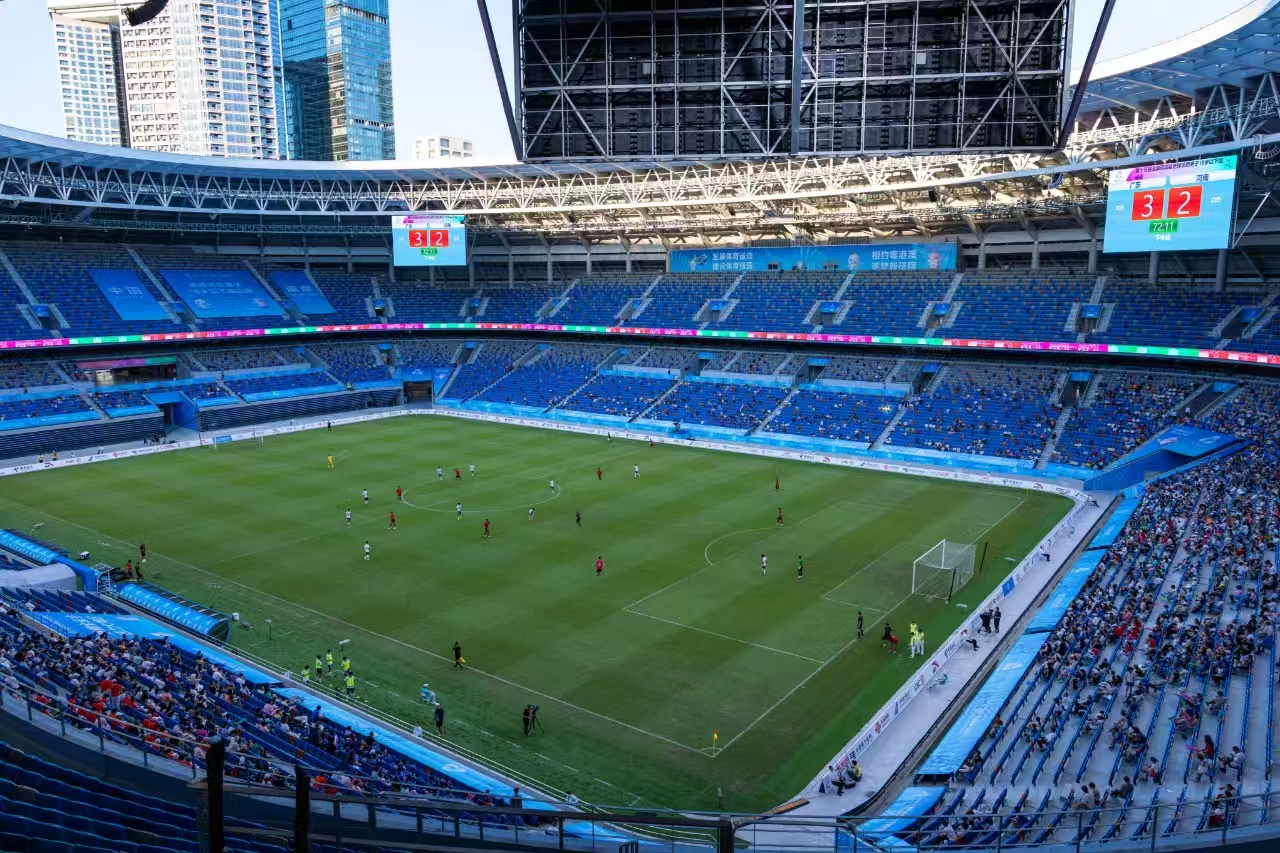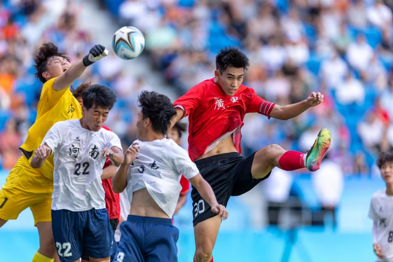 10月14日16时,深圳市体育中心体育场的欢呼声刺破午后晴空——全国第十五届运动会足球项目男子U18组揭幕战在此上演,东道主广东队凭借精准传控与高效进攻,以4:2 击败河南队,为深圳赛区打响“开门红”。赛事首日热度十足,12支参赛队伍悉数亮相,分别在深圳市体育中心体育场、宝安体育中心体育场及大运中心体育场展开角逐,进一步点燃了深圳赛区的十五运热度。