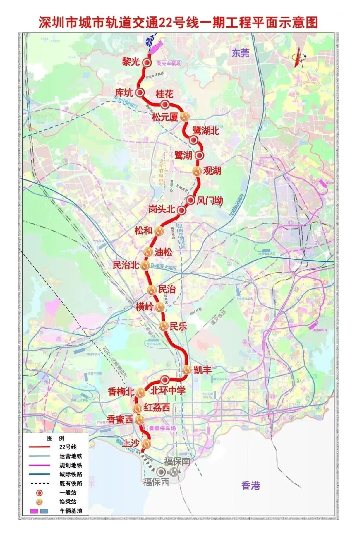 22号线一期建成后,将完善轨道快线网络布局,缓解梅林关地区交通压力,有效提高中部客运走廊及重点区域轨道交通服务。承担福田中心区对龙华、观澜等片区辐射带动作用,支持香蜜湖金融中心、深圳北站商务中心区、坂雪岗科技城等重点区域开发建设。