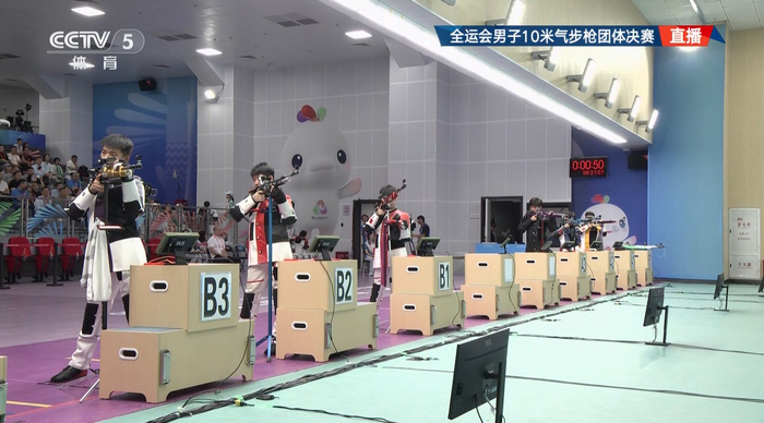 10月15日,全运会射击男子10米气步枪团体决赛战罢,由刘宇坤、李牧原、刘一鸣组成的陕西队17-9战胜浙江队,夺得金牌。