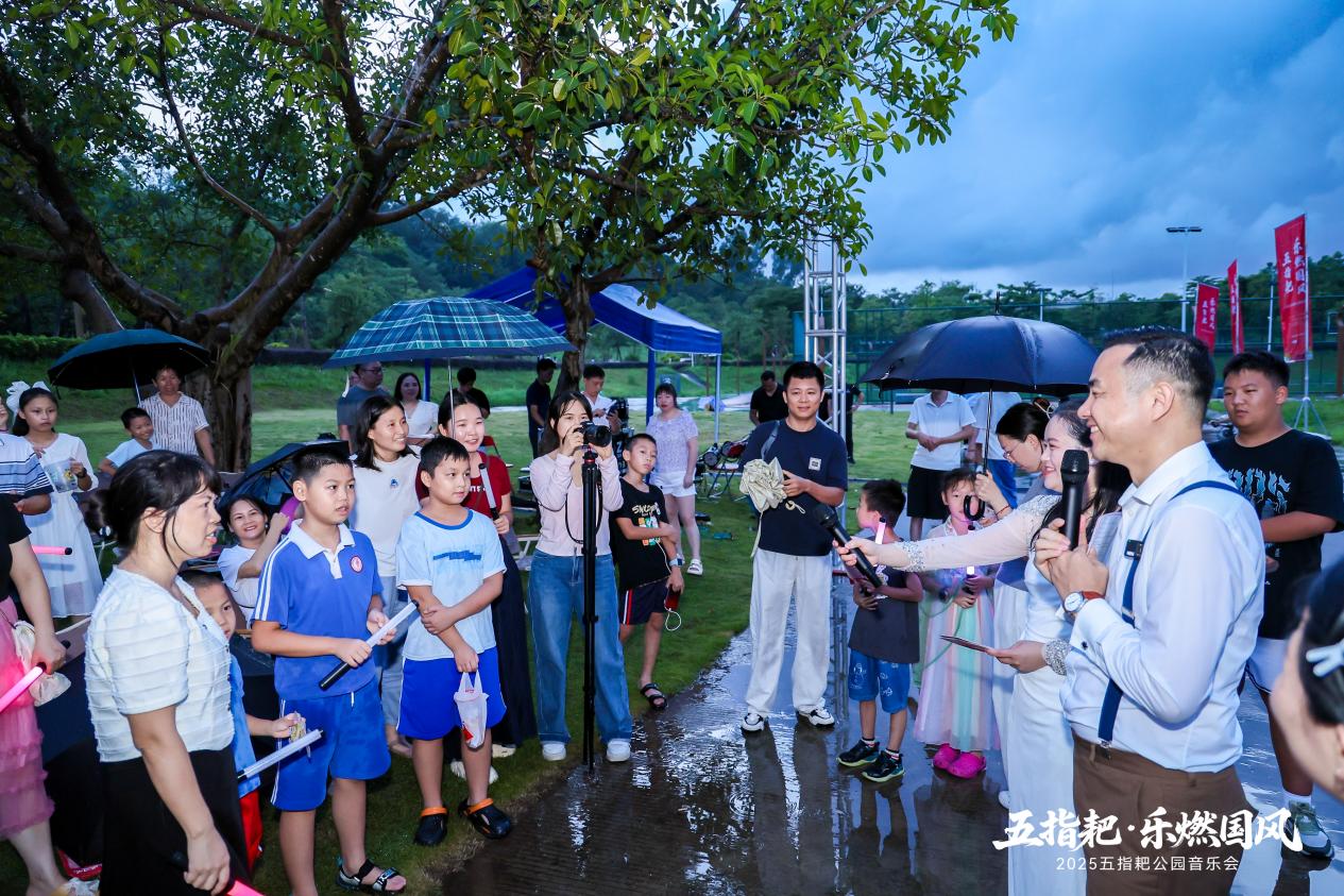 当晚演出进行至第一轮互动游戏"歌词猜猜乐"环节时,天空飘起细雨,却为现场增添了别样意境。观众们在细雨中与主持人积极互动,接唱经典歌曲,场面温馨动人。