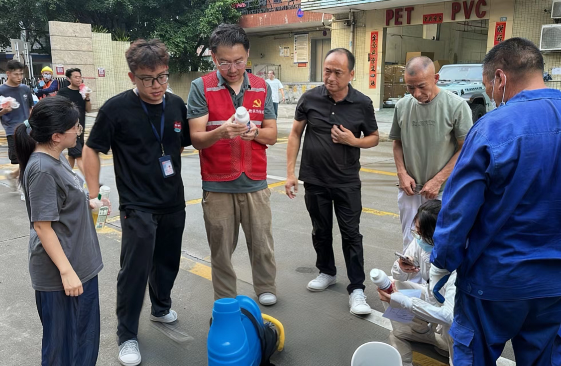 活动将课堂搬到现场,楼栋长“红色小分队”在网格员带领下深入江边新旧村实地操练。工作人员手把手教授“十字喷法”“倒喷墙根”等成蚊杀灭技术,系统讲解“一看二翻三喷四补”四步操作法,确保消杀工作精准高效。“以前只知道敲门发通知,今天终于学会了配比药水、识别死角!”一位参训楼栋长感慨道。