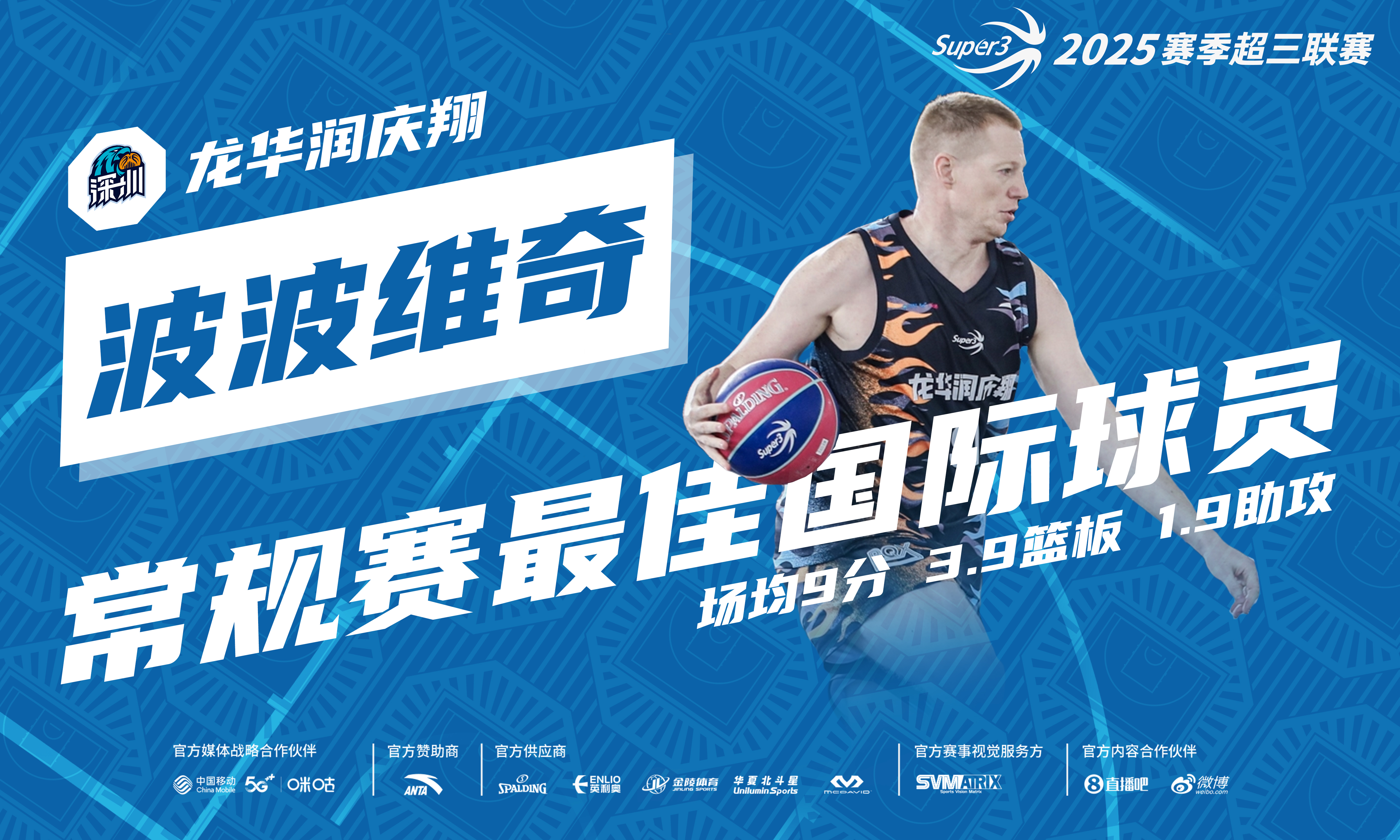 深圳龙华润庆翔外援波波维奇获得常规赛最佳国际球员称号,他场均能够贡献9分3.9篮板1.9助攻。在与宁波海曙捷英的比赛中,波波维奇砍下16分7篮板1抢断1盖帽的“惊人”数据,是球队的重要得分手。