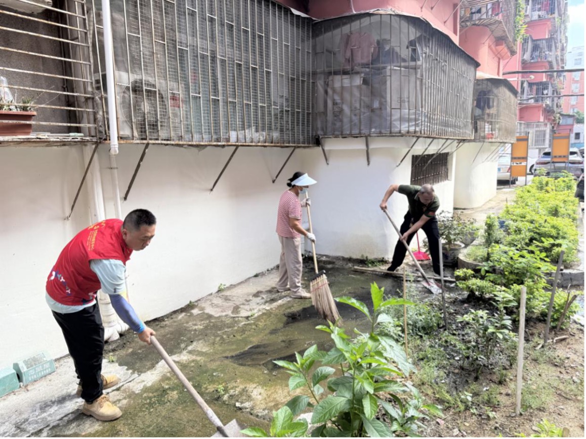 在滨城新村安乐花园,“两热”防控形势严峻。社区党委迅速集结起一支由小区党员、退役军人、物业和业委会成员组成的“突击队”,深入草丛、垃圾站等易滋生蚊虫的地方进行消杀,亲手清理卫生死角、清扫积水。同时,社区工作人员利用早晚居民在家的时间,主动上门沟通,耐心解释蚊虫孳生的危害与“两热”期间的健康风险,推动形成了“支部牵头、党员居民共参与”的群防群治局面。