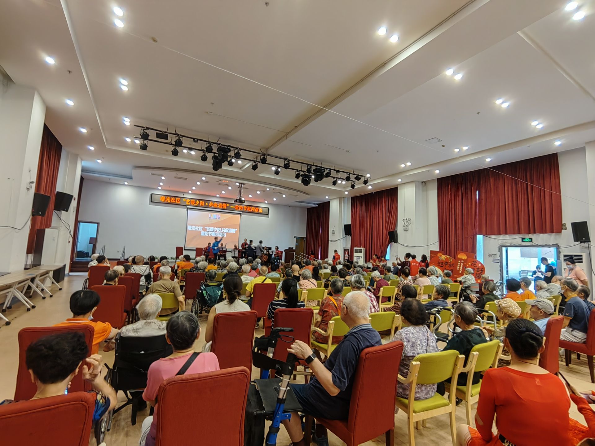 随后,曙光社区文体志愿者队伍献上了一场精彩纷呈的文艺演出。歌曲《太阳最红毛主席最亲》深情款款,唤起了长辈们的时代记忆;舞蹈《手心有你》温情脉脉,传递了陪伴与关怀的温暖;舞蹈《如果爱还在》优雅动人,展现了积极乐观的生活姿态;豫剧《朝阳沟》选段字正腔圆,赢得了现场阵阵掌声。整场演出气氛热烈,欢声笑语不断,为长者们带去了精神上的慰藉与欢乐。