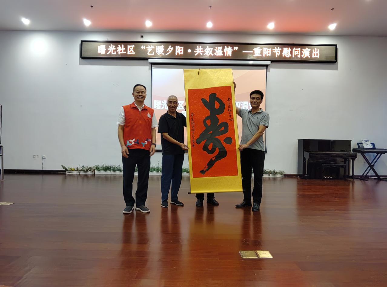 演出结束后,社区领导向深圳市南山区社会福利中心赠送了精心准备的书法作品——苍劲有力的“寿”字,以此表达对全体长者健康长寿、福寿绵长的美好祝愿,将活动现场的尊老温情推向高潮。