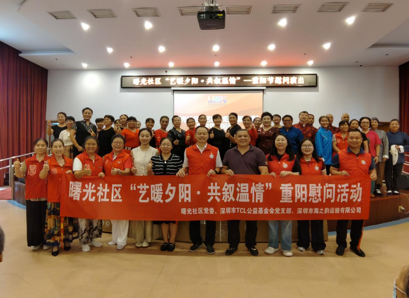 在重阳节即将来临之际,南山区西丽街道曙光社区党委联合深圳市TCL公益基金会党支部、TCL公益基金会妇委会、深圳市海之韵运输有限公司,共同前往深圳市南山区社会福利中心开展“艺暖夕阳·共叙温情”重阳慰问活动,以文艺表演和暖心物资传递社会关爱,用实际行动践行社会责任。