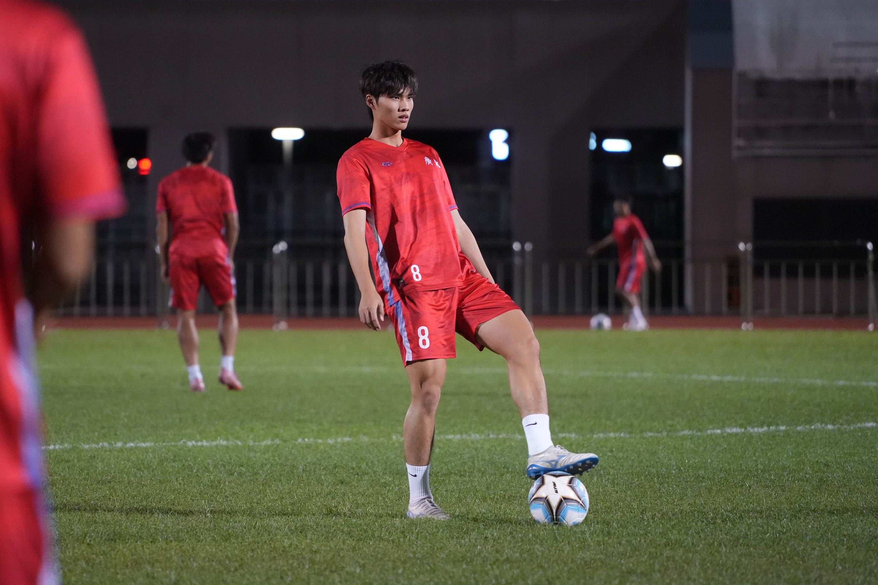 10月15日晚7时30分,广东全运U18男足在宝安体育场副场进行赛前适应性训练。球队队长、“宝安皮尔洛”潘锘均,时隔三四年再次踏进这片熟悉的场地。训练尚未开始,他就被宝安体校的副校长郭科峰和教练黄运回“截”住,接回旁边的体校看看。母亲蒋美玲早已在那里等候多时。