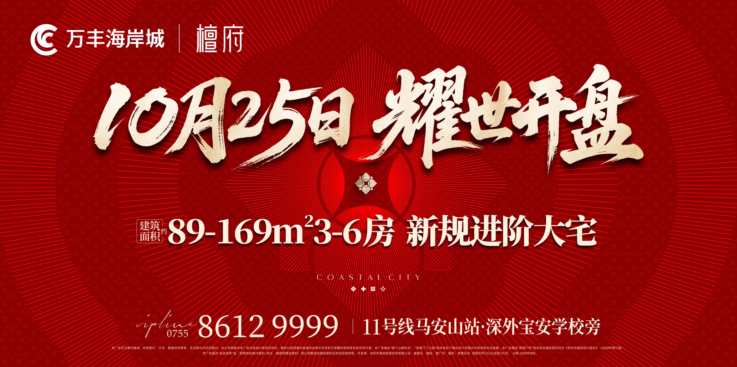 10月15日,万丰海岸城B区首发住宅项目——檀府正式取得预售许可!作为万丰海岸城首个新规地块项目,檀府拥有着“学校、地铁、山姆、公园” 四大核心配套与优质产品品质。为了圆更多市民安居梦,檀府推出了诚意登记99折、认筹劲爆97折、开盘98折的超大优惠。项目备案均价约5.46万/㎡,折后约5.14万/㎡,为深圳西部改善型购房者提供了兼具居住质感与性价比的置业选项。
