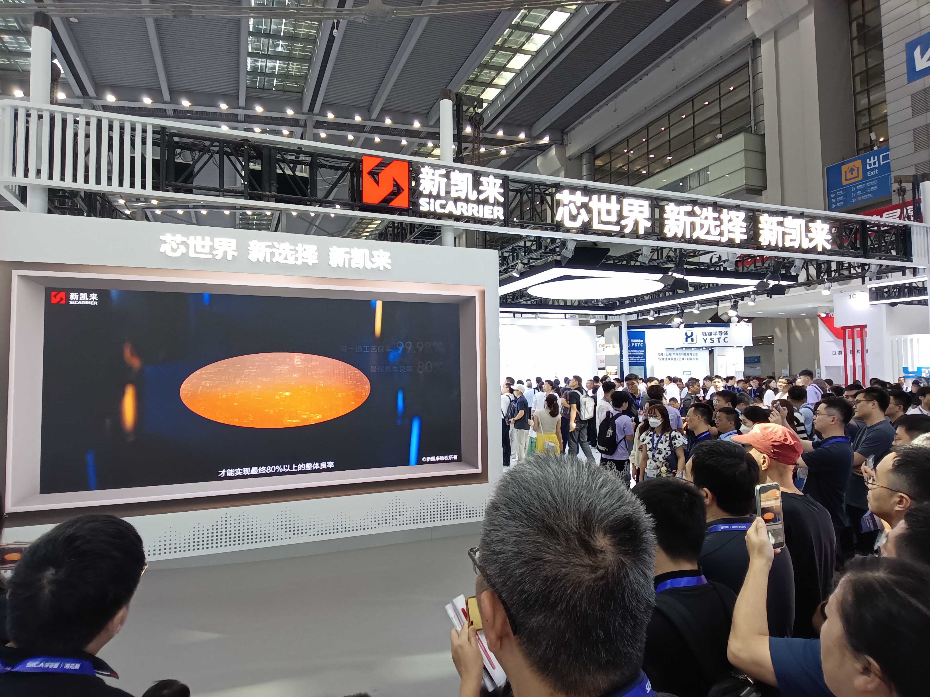 尽管没有在本届湾芯展上发布新品,但新凯来的展台仍然是整个展会上人流量最大的区域。从各地赶来的客商纷纷举着手机拍照,甚至连展团边的大屏幕前也围满了观看宣传片的客商。