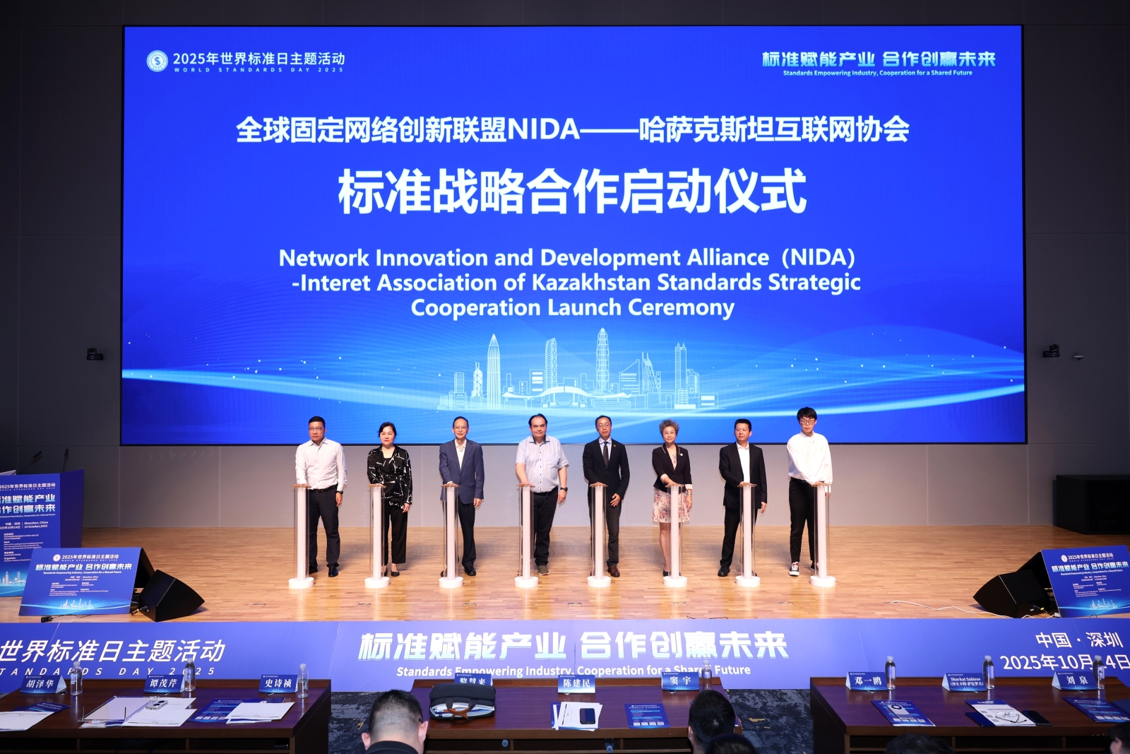 会议现场举行了全球固定网络创新联盟(NIDA)与哈萨克斯坦互联网协会标准战略合作启动仪式,深圳市市场监督管理局、河套深港科技创新合作区深圳园区发展署、金砖国家未来网络研究院、中国电信研究院领导共同见证了这一重要时刻。这一合作标志着深圳在推动国际标准合作、共建网络空间命运共同体方面迈出坚实一步。