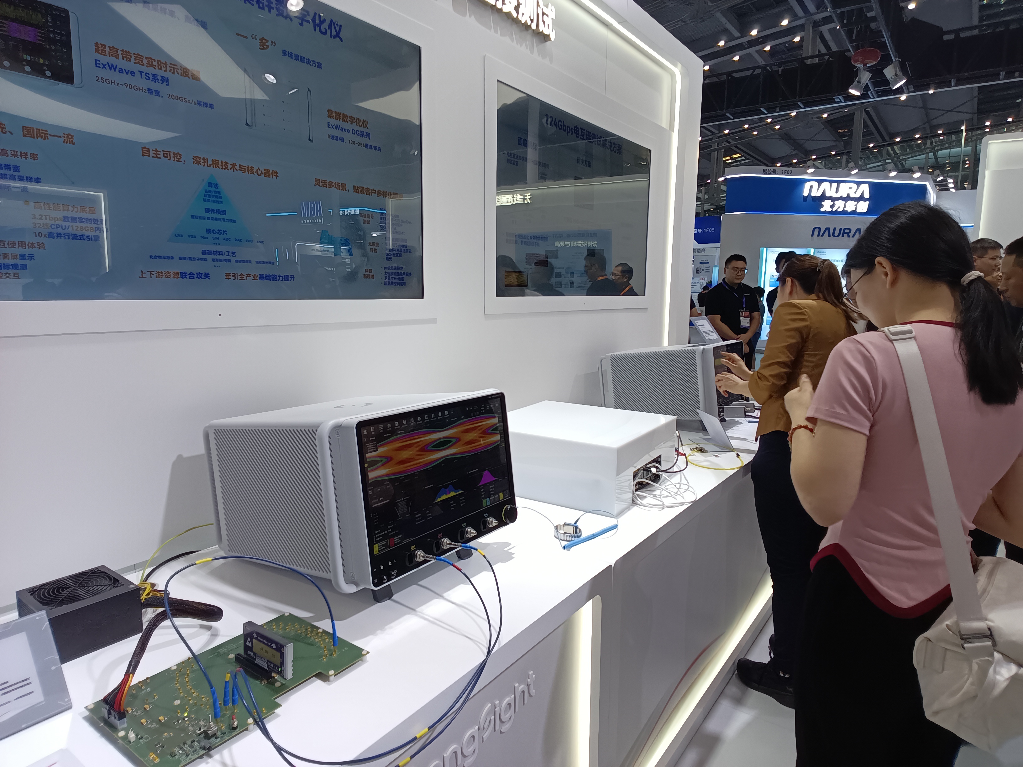 万里眼此次发布的超高速实时示波器将国产示波器关键性能提升了500%,并具备智能寻优、服务器级算力等创新特性。除90GHz带宽外,其采样率达每秒2000亿次,可精准捕获皮秒级瞬态信号;存储深度达40亿样点,为同级别产品两倍,支持连续无间隙记录复杂信号,主要性能指标实现了全球领先。