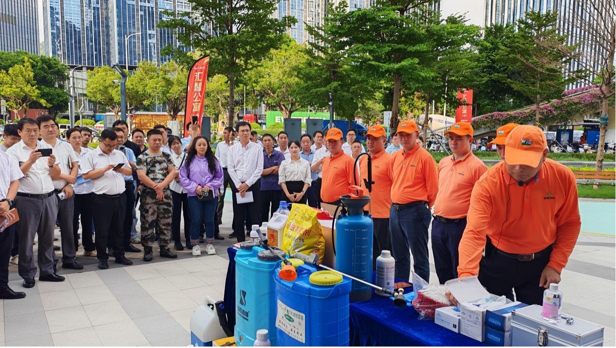 理论学习结束后,宝实物业所属企业新银物业公司派出专业消杀队伍进行户外实操教学。新银物业公司持有“深圳市病媒生物防治服务机构服务能力证书”,在专业消杀作业上具备相当资质与规范上岗能力。在现场,参训人员分组开展实战训练,逐一掌握孳生地排查(重点覆盖楼顶天台、地下车库、消防水池等易积水区域)、消杀记录规范填写、个人防护装备正确穿戴等关键技能。现场还演示了热烟雾机对下水道的消杀作业、超低容量喷雾机在绿化带的施药操作,并强调药物不慎溅到皮肤时的应急处理方法与防暑药品配备要求,确保每一位参训人员都 “学得会、用得上”。