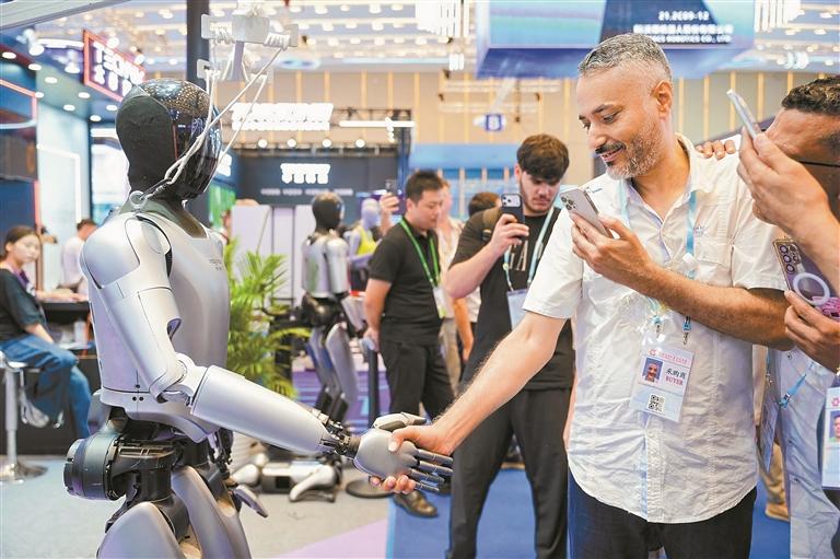 协作机器人第一股深圳越疆科技展出的能自主学习进化的机器人“理疗师”、全自动制作咖啡的机器人“咖啡师”和可精准复现专家手法的机器人“艾灸师”备受全球采购商青睐。越疆科技连续8年位居中国协作机器人出口量榜首。该公司品牌经理李嘉贤介绍,公司协作机器人已销往全球百余个国家和地区,2024年出口增幅超50%。今年上半年,公司商用服务机器人收入同比增长165.5%,在境外(含中国港澳台)市场的营收同比增长8.4%,占总营收的比重达52.4%。