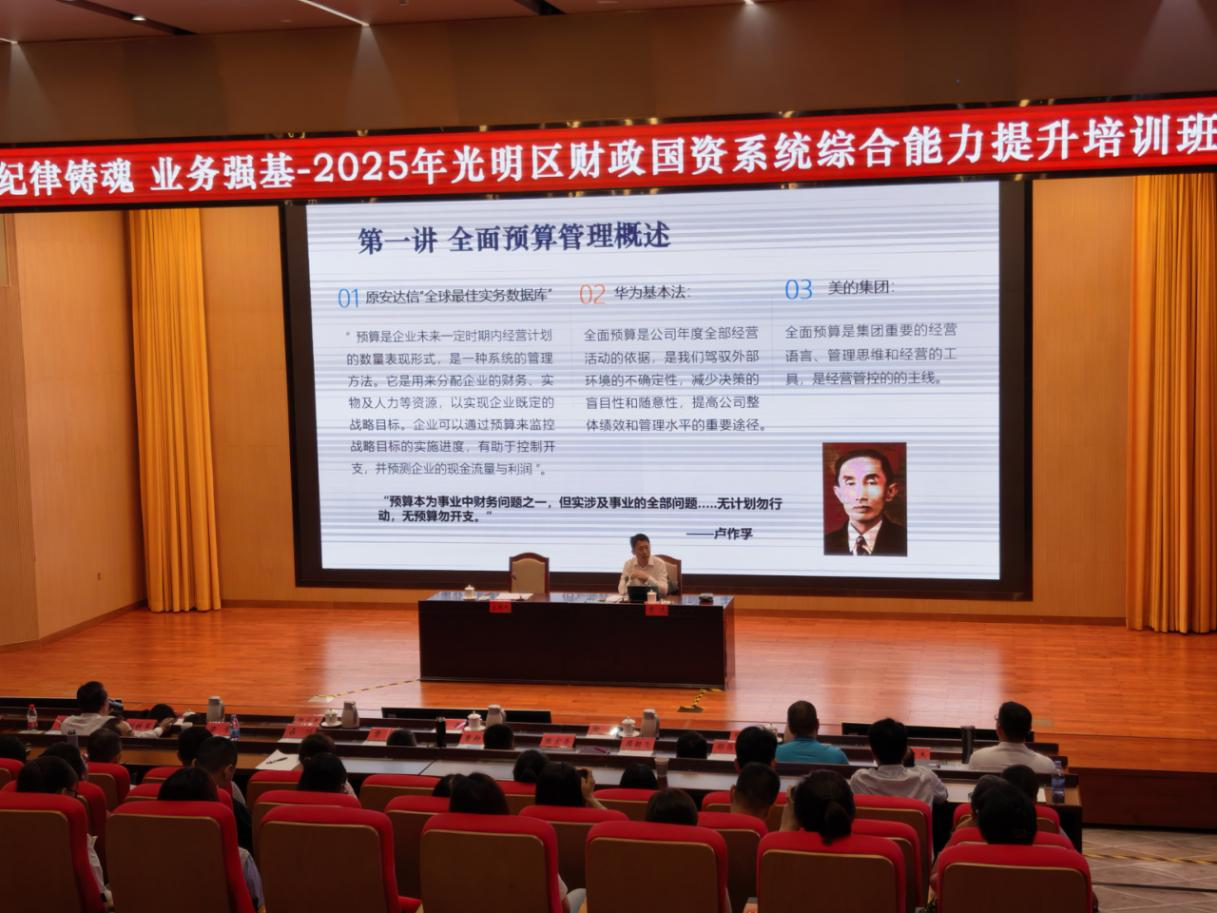 10月15日,由区财政局主办的“纪律铸魂 业务强基——2025年光明区财政国资系统综合能力提升培训班”圆满结束。此次培训为期2天,区财政局、各区属国企领导班子成员及中层干部、业务骨干代表等160余人参加。