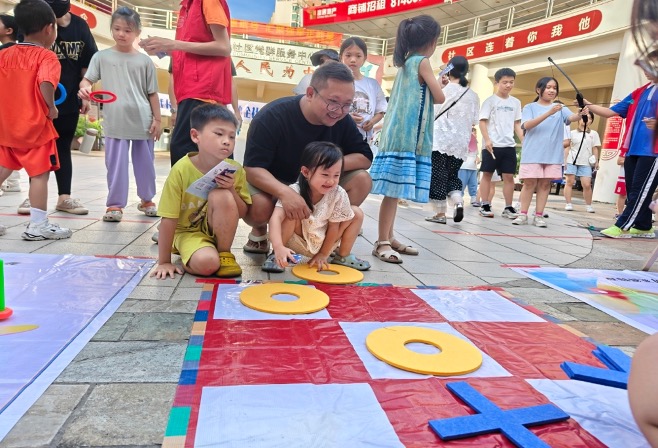 【内容】面向沙企社区的亲子家庭开放,旨在通过轻松有趣的运动项目,增进邻里情谊。活动设置了多项适合亲子共同参与的趣味运动项目,如龟兔赛跑接力、俄罗斯方块、趣味轰炸机等,提高居民的幸福感和归属感。