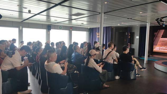 随后,学员们集体观看了《探秘港珠澳大桥》纪录片。影片中建设者们克服世界级难题的艰辛历程与不屈不挠的奋斗精神,深深打动了在场的每一个人。而当游轮缓缓穿越被誉为“现代世界七大奇迹”之一的港珠澳大桥时,宏伟的桥体与建设者的智慧形成了最直观的呼应,民族自豪感与奋斗激情在每个人心中澎湃。