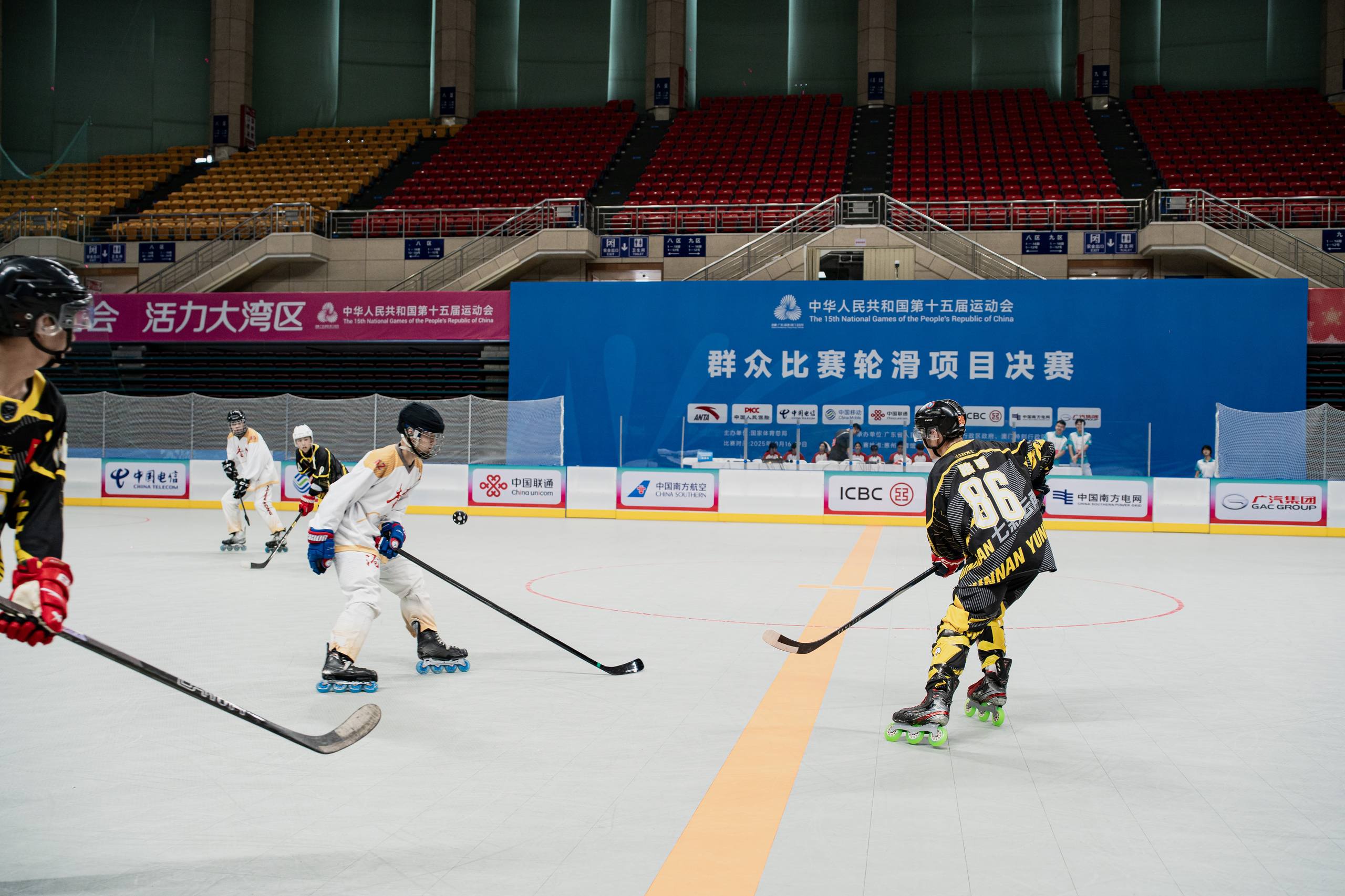 10月15日晚,第十五届全国运动会(简称“十五运会”)群众比赛轮滑项目决赛在惠州体育馆拉开帷幕,当晚进行了男子单排轮滑球第一轮4场比赛,上海队、天津队、广东队、北京队首战告捷。