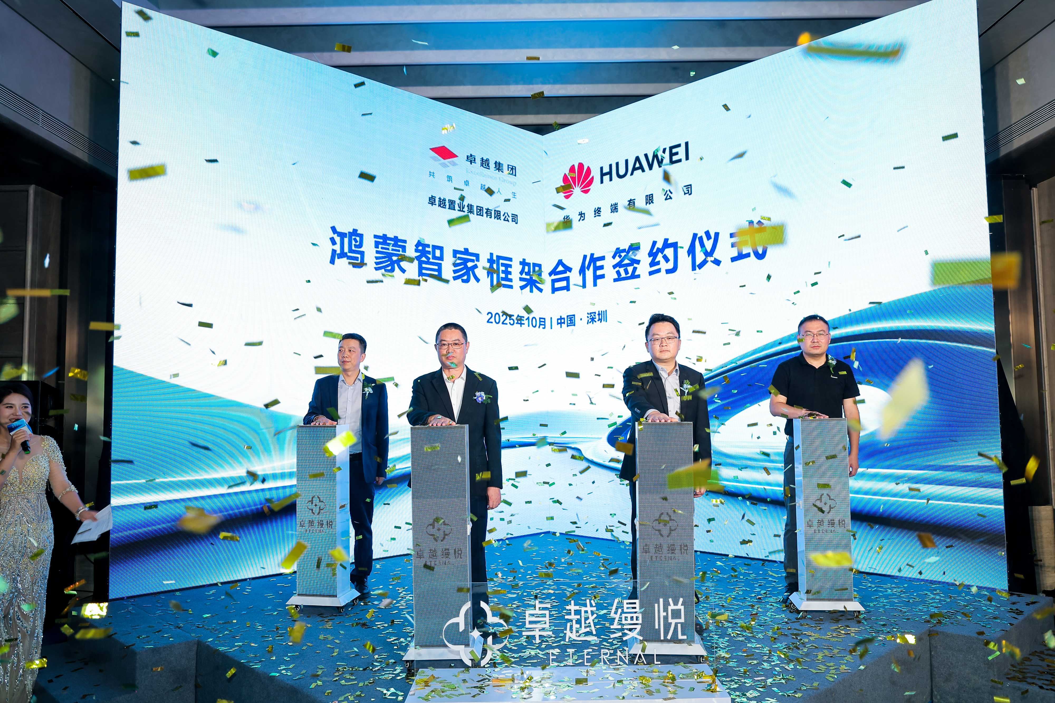 在科技智能盛行的当下,卓越集团X华为鸿蒙智家,两大巨擘基于对未来人居的一致洞察,携手合作并举行签约仪式!共同打造中轴华为全屋智能新规样板房,启幕智慧缦生活。