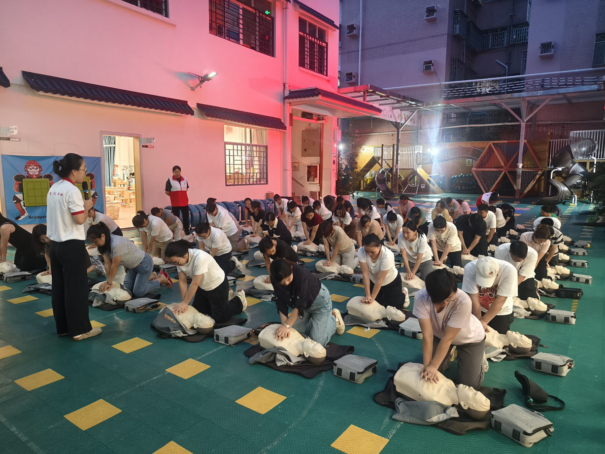 培训邀请专业急救讲师团队授课,采用“理论讲解+现场演示+实操练习”相结合的方式,确保参训人员听得懂、学得会、用得上。课程内容紧贴日常生活实际,涵盖多项关键急救技能。每场培训首先进行系统理论讲解,讲师结合真实案例,深入浅出地介绍心肺复苏(CPR)的生理原理、适用场景及操作流程,强调“黄金四分钟”的重要性;随后,通过人体模型进行CPR操作演示,并组织学员在模拟人上进行胸外按压与人工呼吸实操练习。紧接着,讲师详细讲解自动体外除颤器(AED)的功能、使用时机与操作步骤,并结合设备进行模拟演练。针对常见的气道异物梗阻问题,培训重点教授了适用于成人和儿童的海姆立克急救法,并通过分组演练帮助学员掌握正确手法。