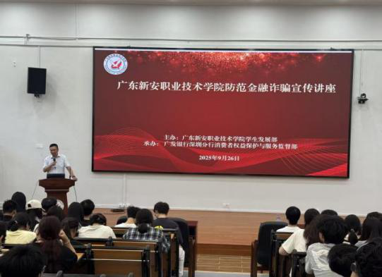 近日,广发银行深圳分行携手广东新安职业技术学院,成功举办以“取经路上识风险,火眼金睛护钱包”为主题的校园金融安全宣教活动,围绕反电信诈骗、反洗钱、反假货币、理财知识四大主题,增强广大师生的金融风险防范意识和自我保护能力。