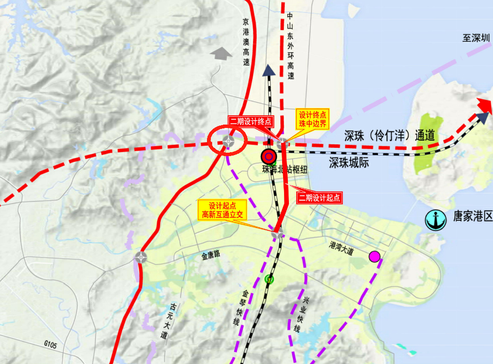 深珠城际始于深圳前海站,于珠海高新区后环片区设站,与珠斗城际、深惠城际贯通,线路全长约40公里,设计时速200公里,已纳入粤港澳大湾区城际铁路建设规划。