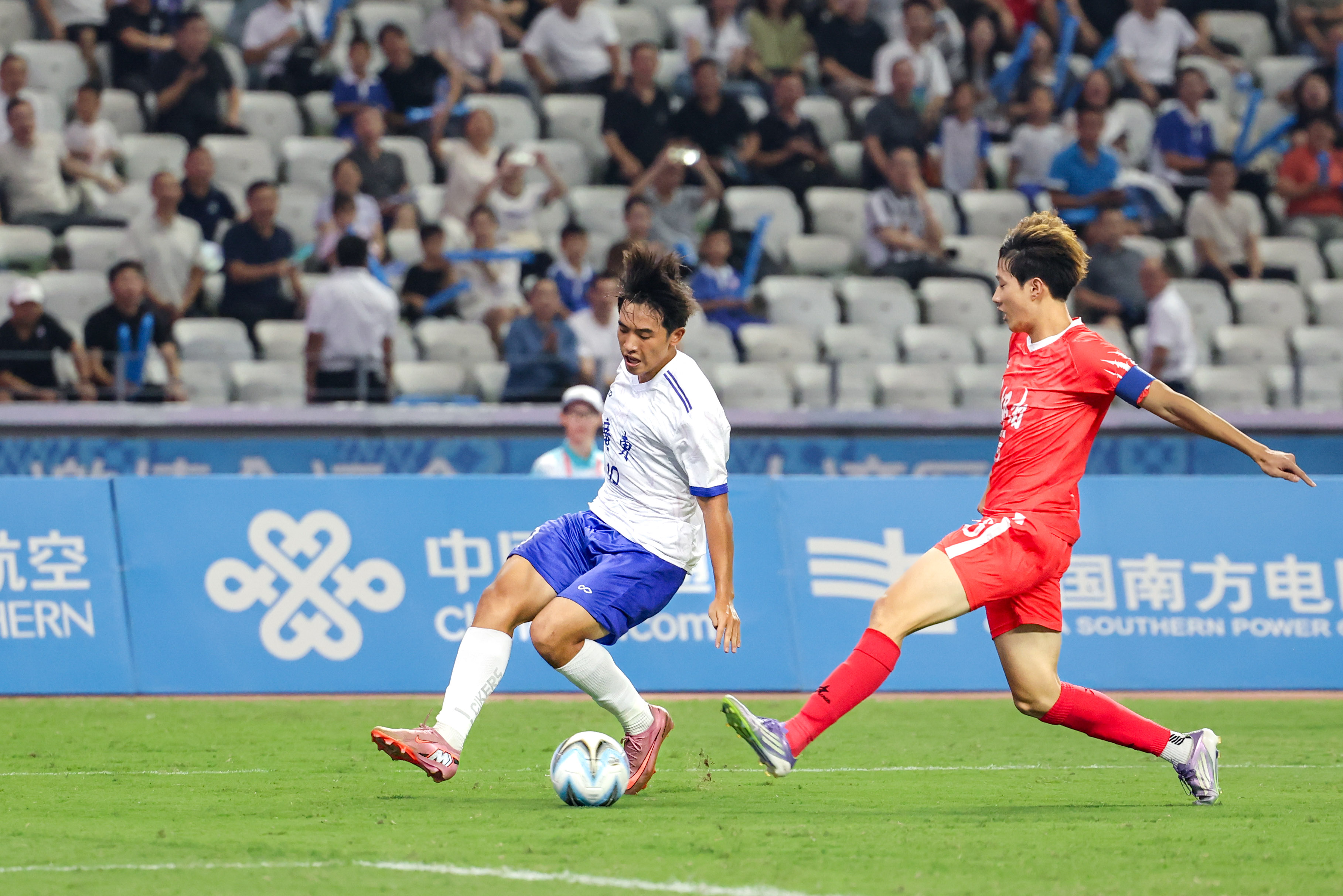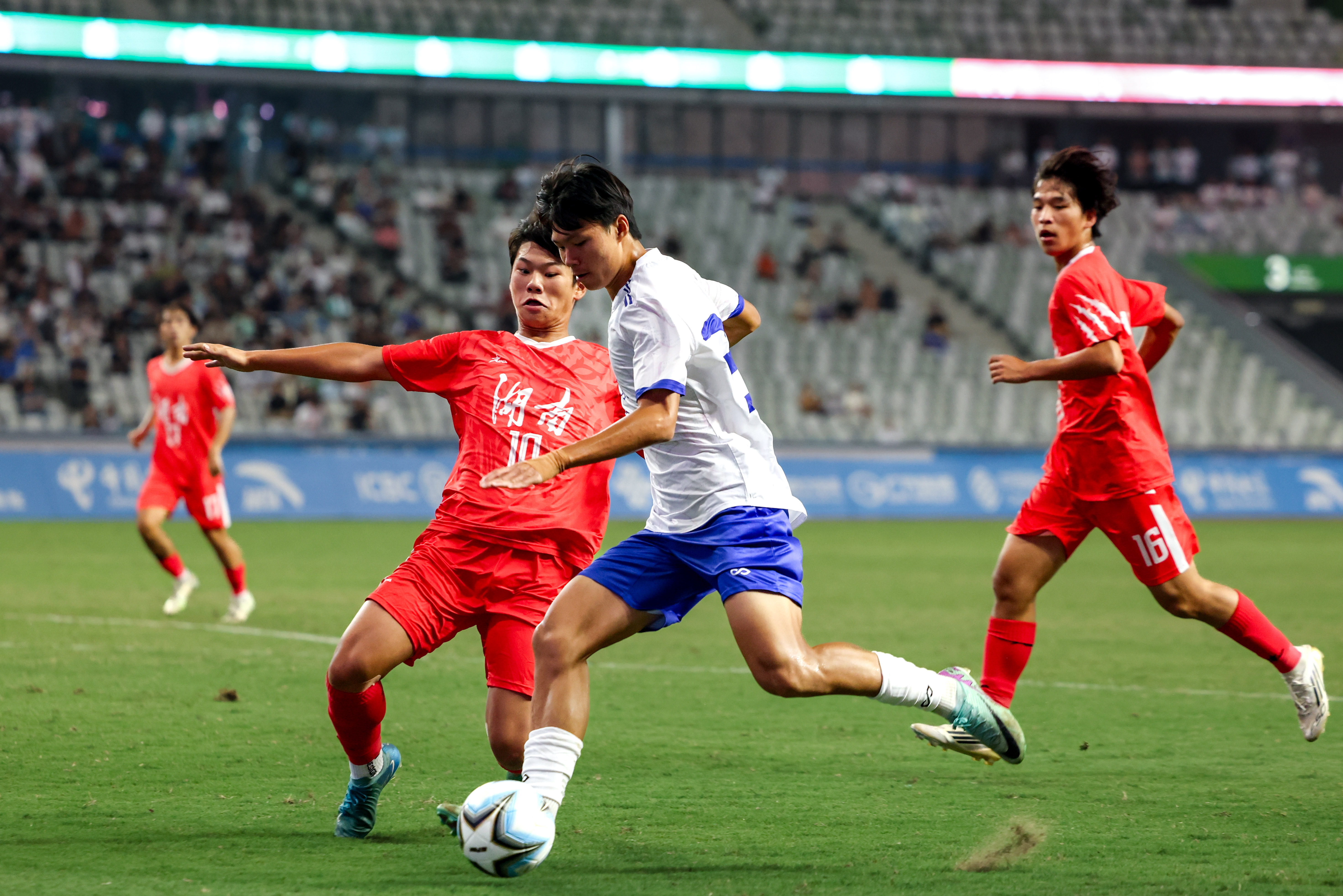 广东队在下半场第48分钟扩大领先优势,黄晟豪抓住禁区内混战机会将球打进,将比分改写为2比0。第79分钟,湖南队球员防守时不慎自摆乌龙,广东队3比0领先。6分钟后,广东队边后卫江志钦边路突破后倒三角回传,何嘉林在禁区边缘劲射得手,4比0。