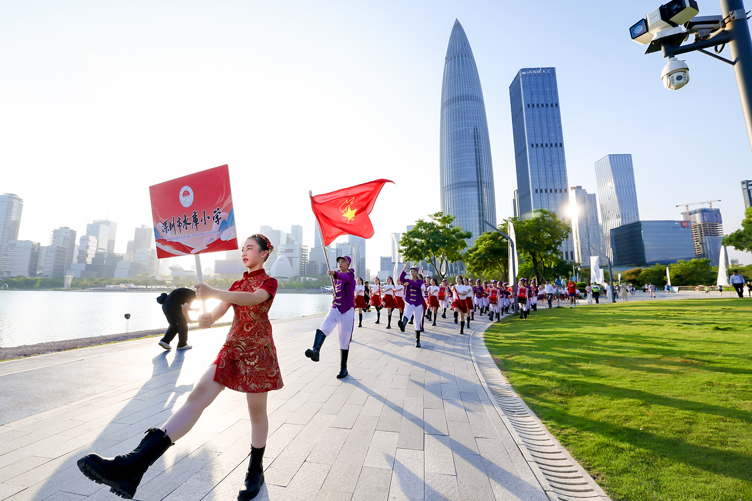 10月16日,2025中美青少年行进乐交流展示活动在深圳南山人才公园潮汐广场隆重举行。深圳市水库小学少先队行进鼓号队与校合唱队作为中方代表,与美国三支青少年行进乐队同台献艺,以音乐为桥,谱写中美青少年友好交流的新篇章。