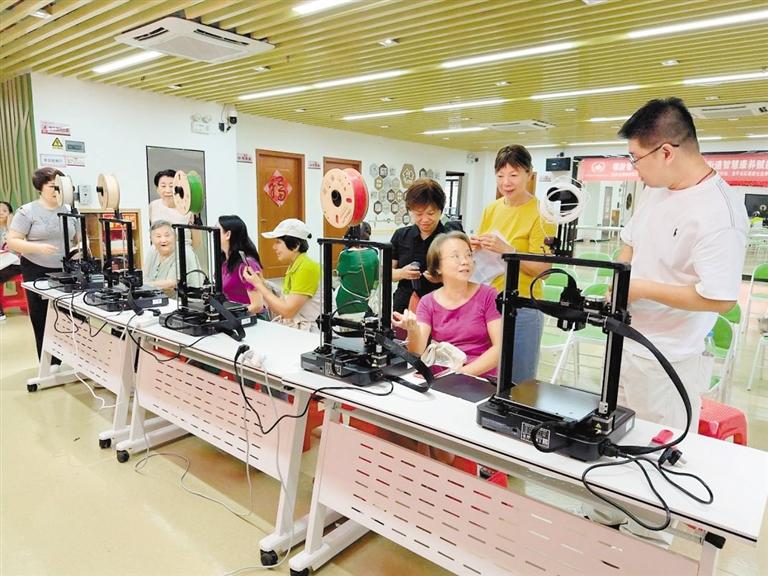 3D打印工作坊变身“银发创新实验室”,长者们在导师一对一的指导下,从建模到打印,亲手制作出S形挂钩、姓名印章等实用工艺品。